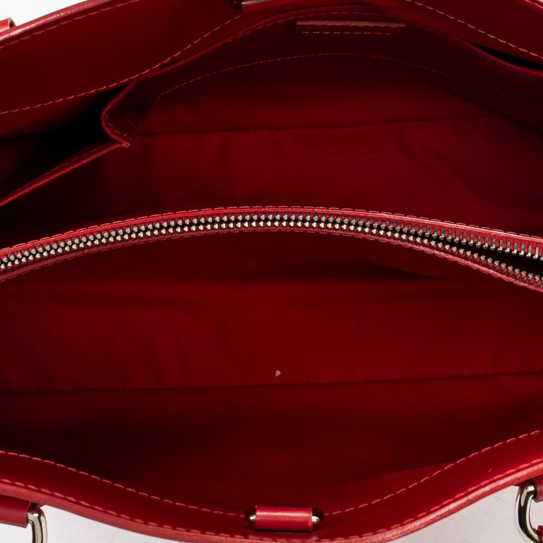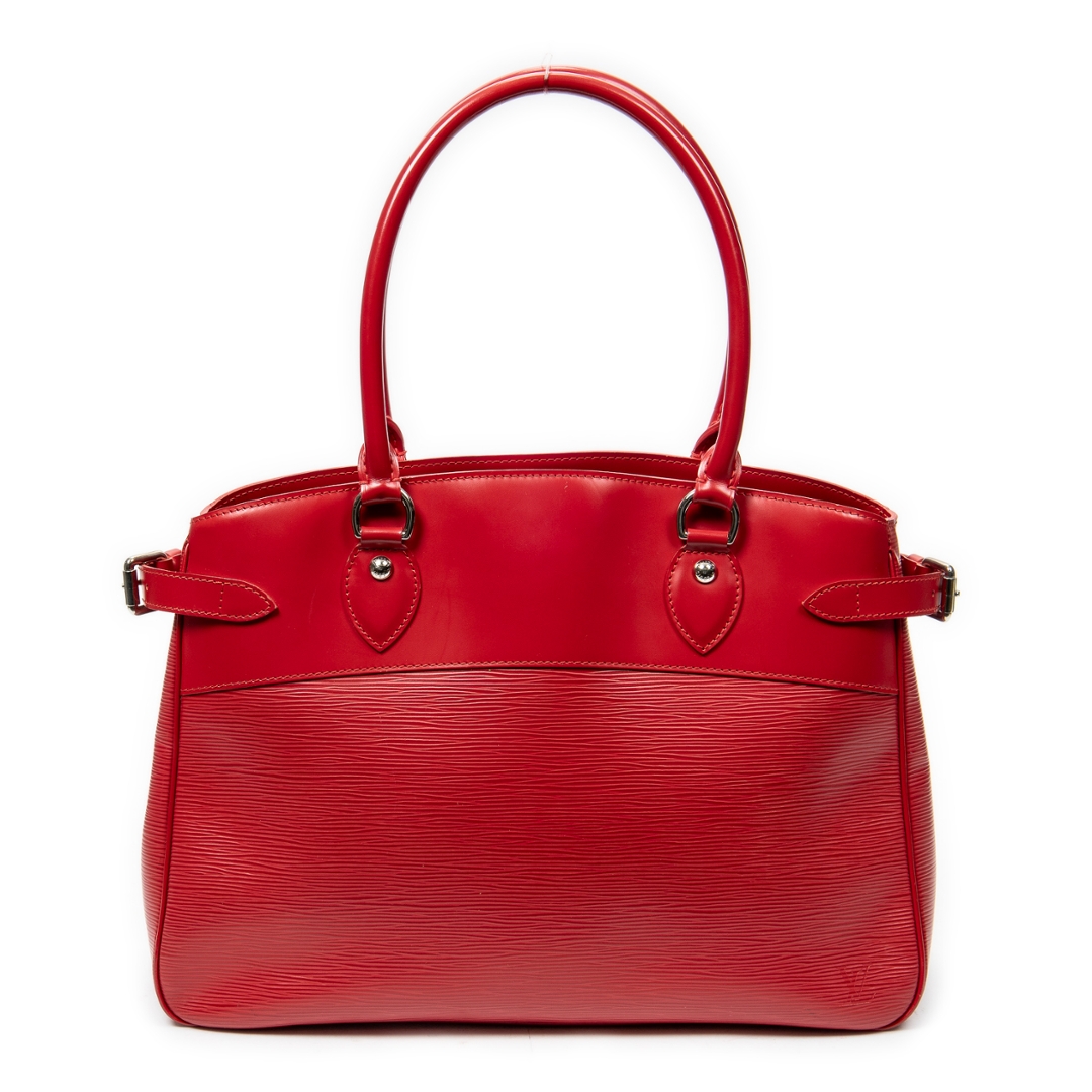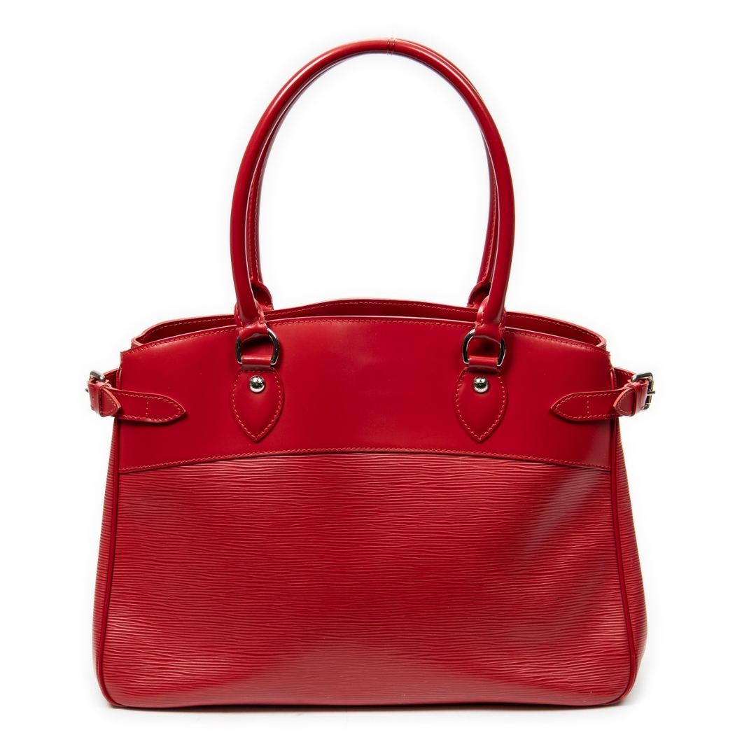 A vintage Louis Vuitton red calf leather Passy bag with a certificate of authenticity. Approximately 30cm height, 40cm width.
