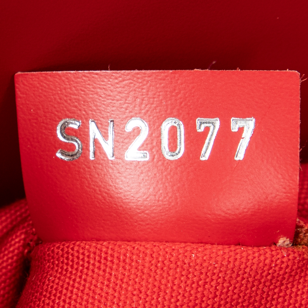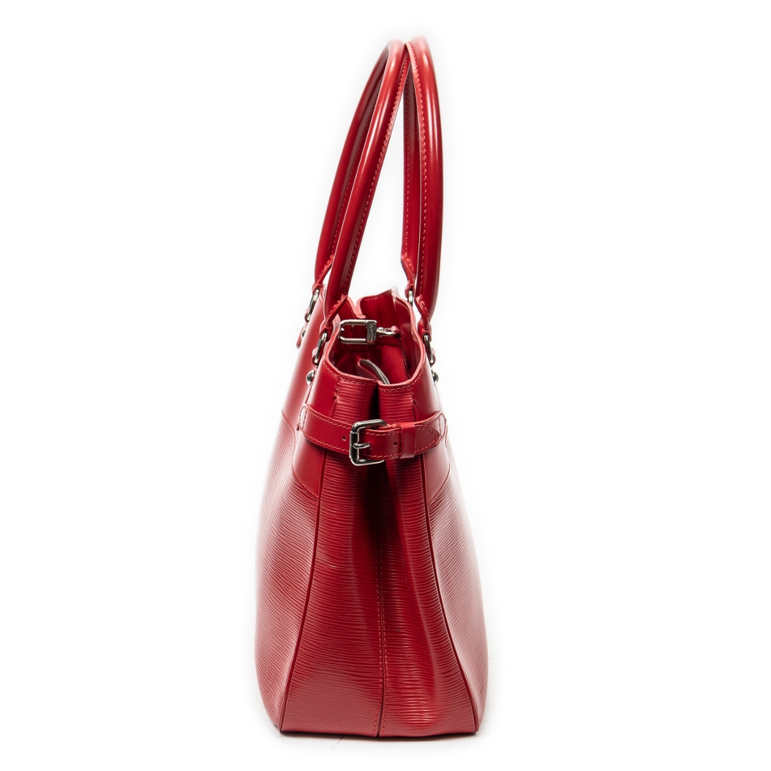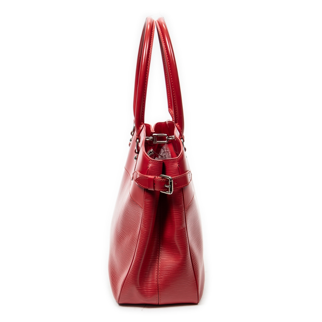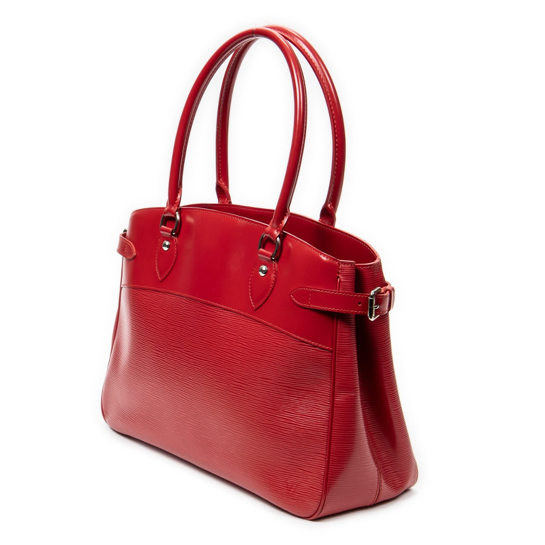 A vintage Louis Vuitton red calf leather Passy bag with a certificate of authenticity. Approximately 30cm height, 40cm width.
