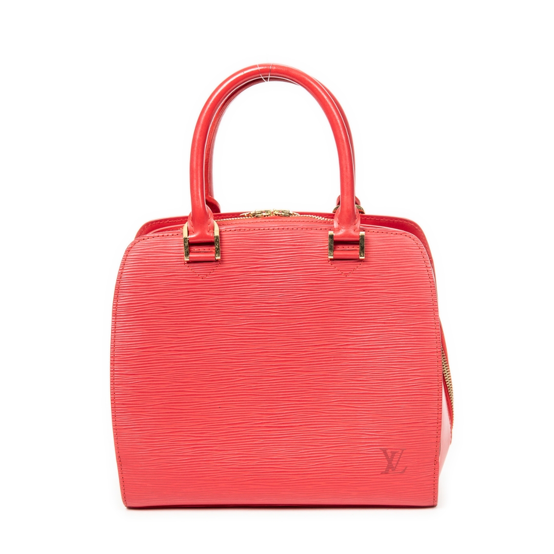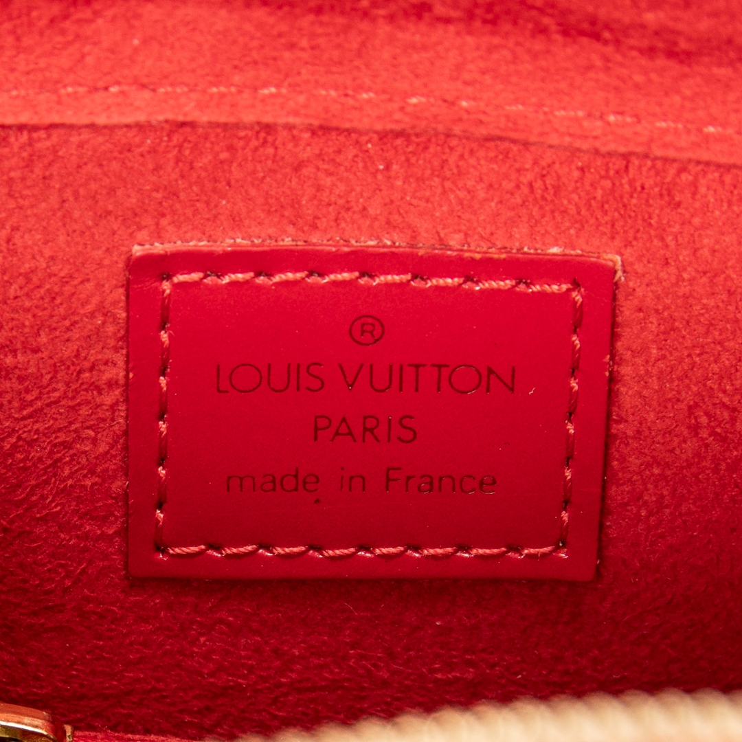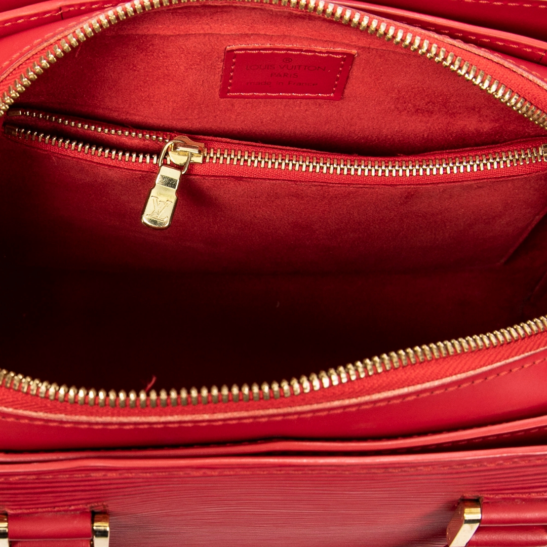 A vintage Louis Vuitton red calf leather Pont-Neuf bag with a certificate of authenticity, Approximately 22cm height, 24cm width.
