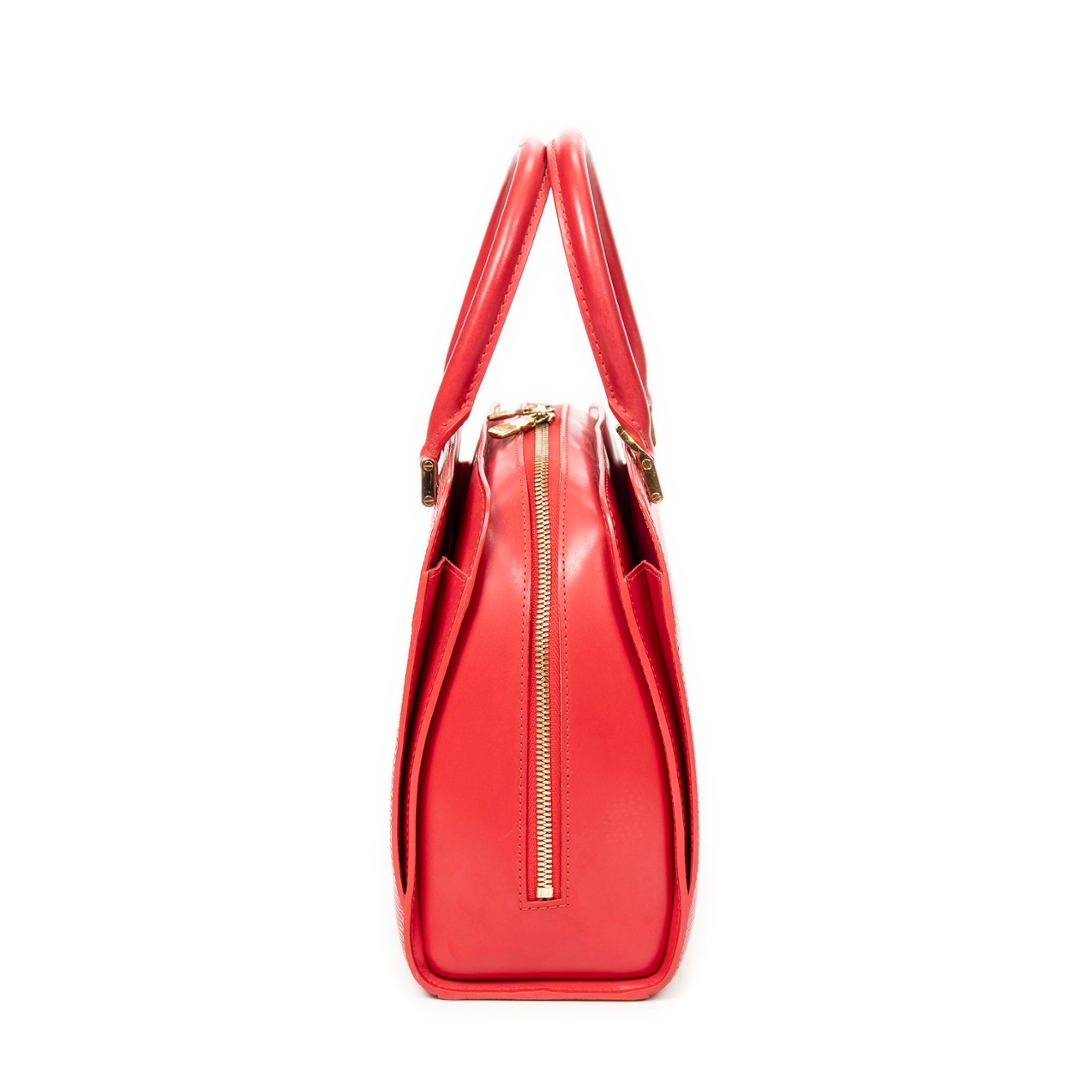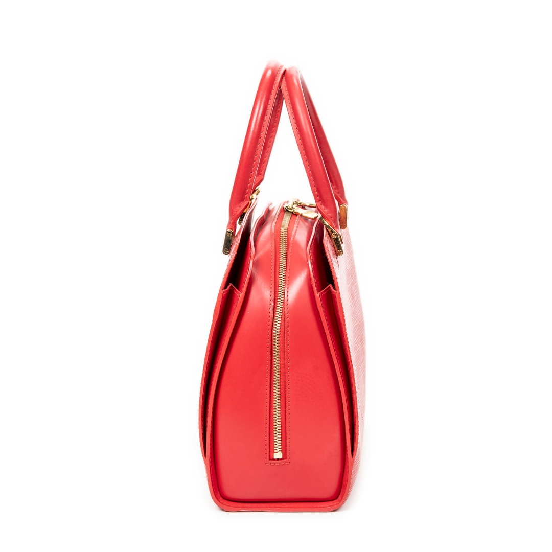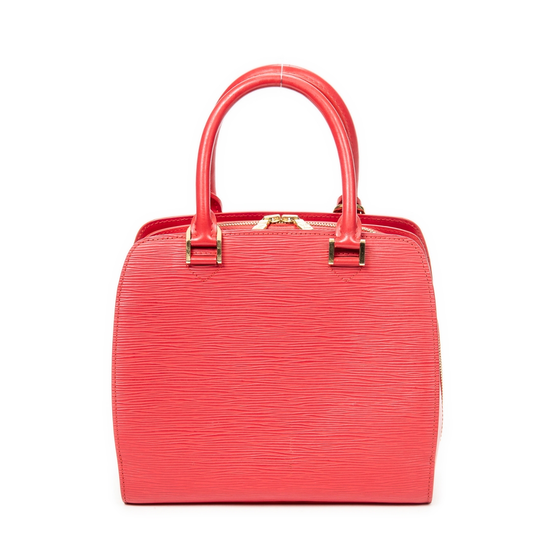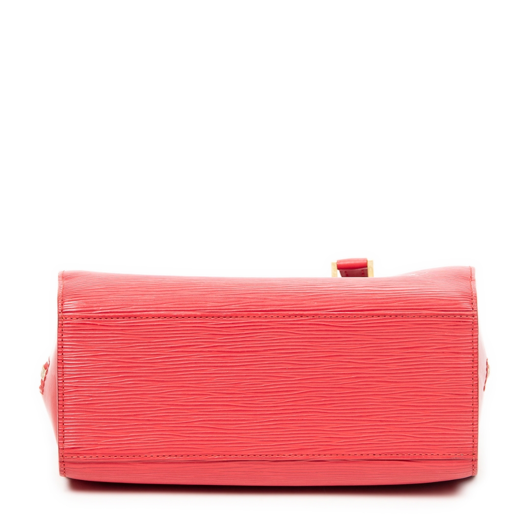 A vintage Louis Vuitton red calf leather Pont-Neuf bag with a certificate of authenticity, Approximately 22cm height, 24cm width.