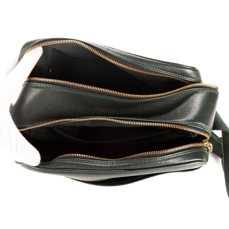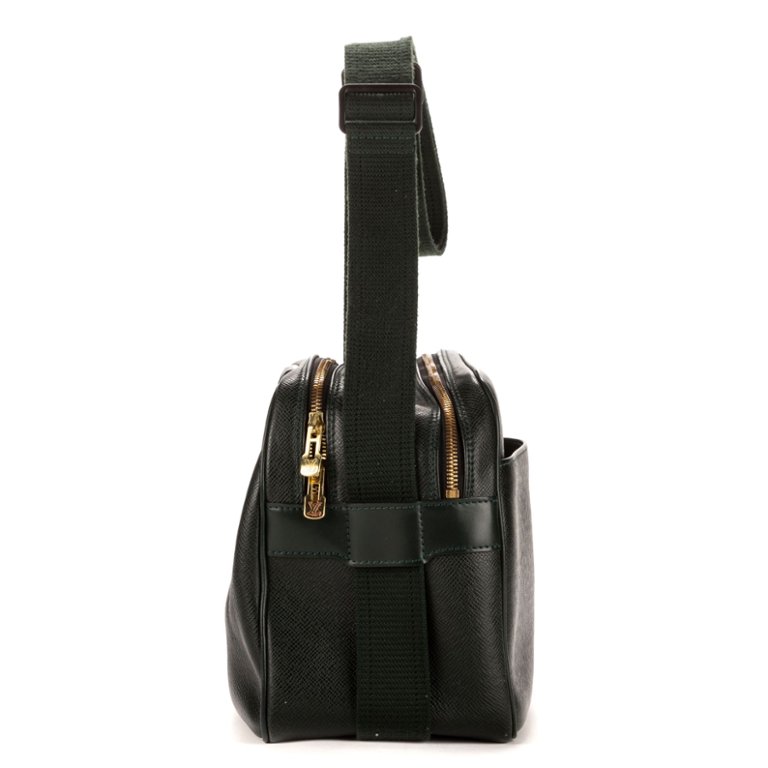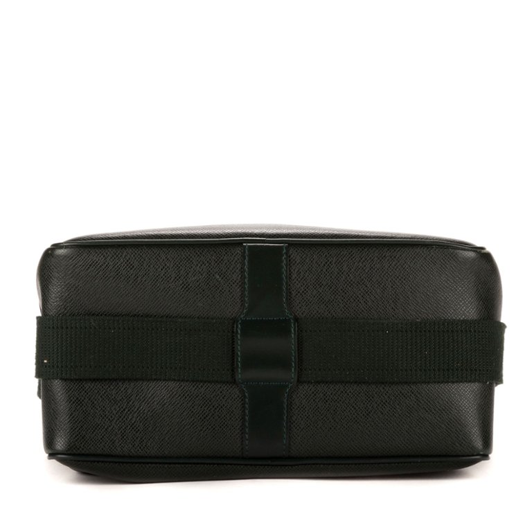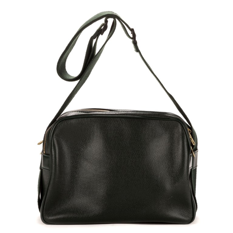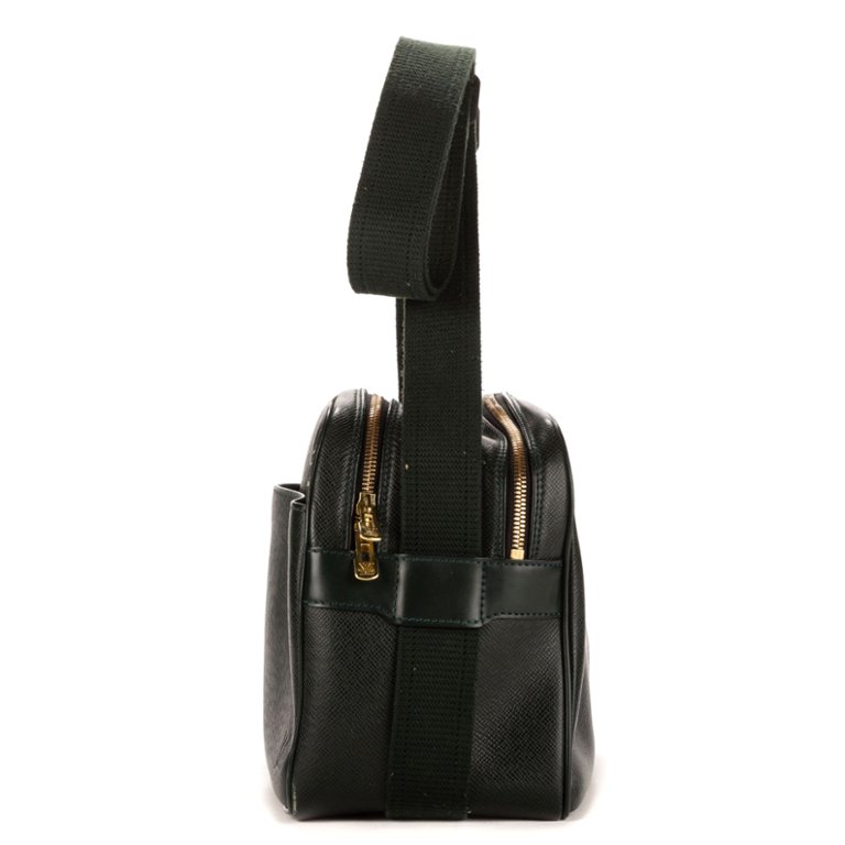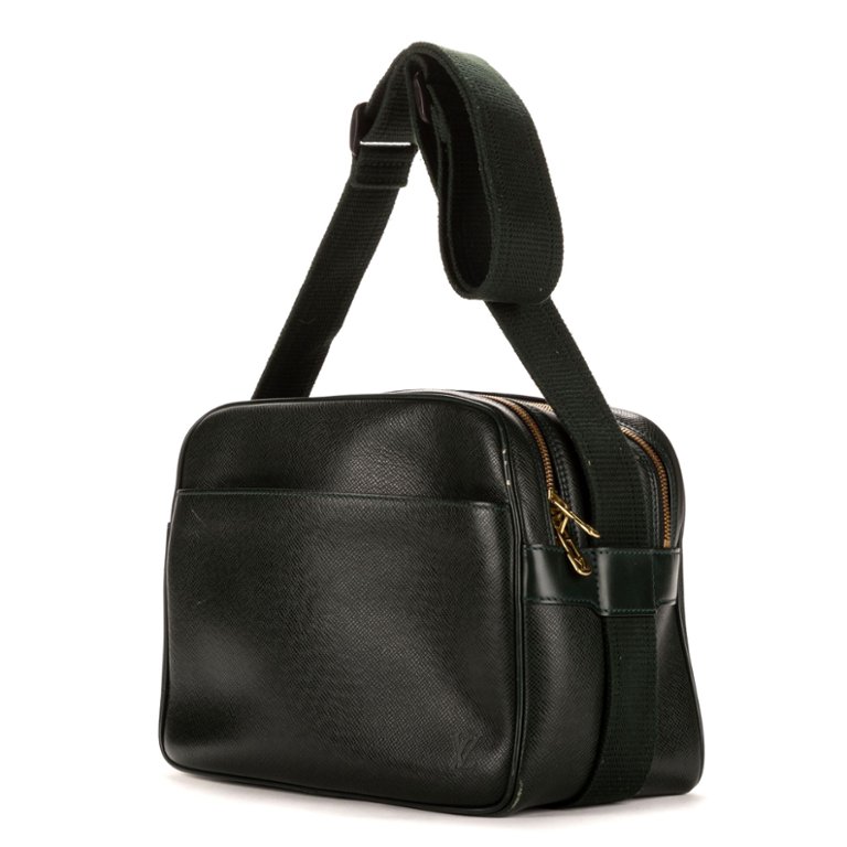 A vintage Louis Vuitton Reporte dark green taiga leather bag with a certificate of authenticity, Approx 21cm height, 28cm width.