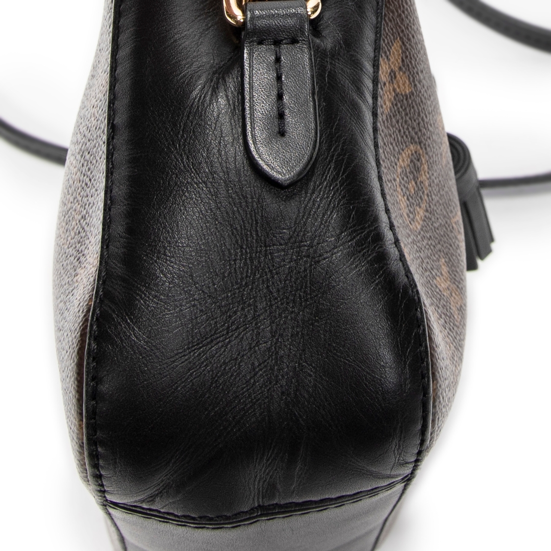A vintage Louis Vuitton brown/black coated canvas Saintonge bag with a certificate of authenticity. Approximately 14cm height, 22cm width.