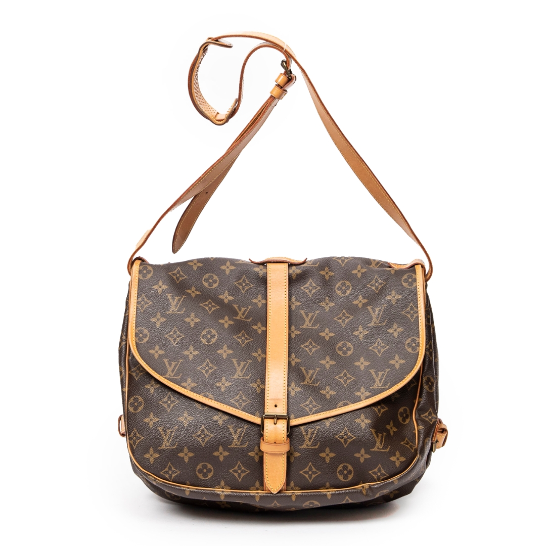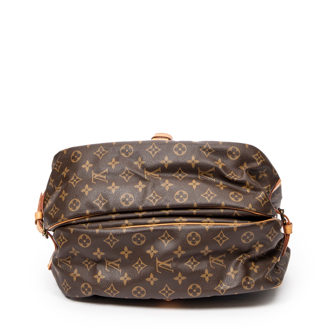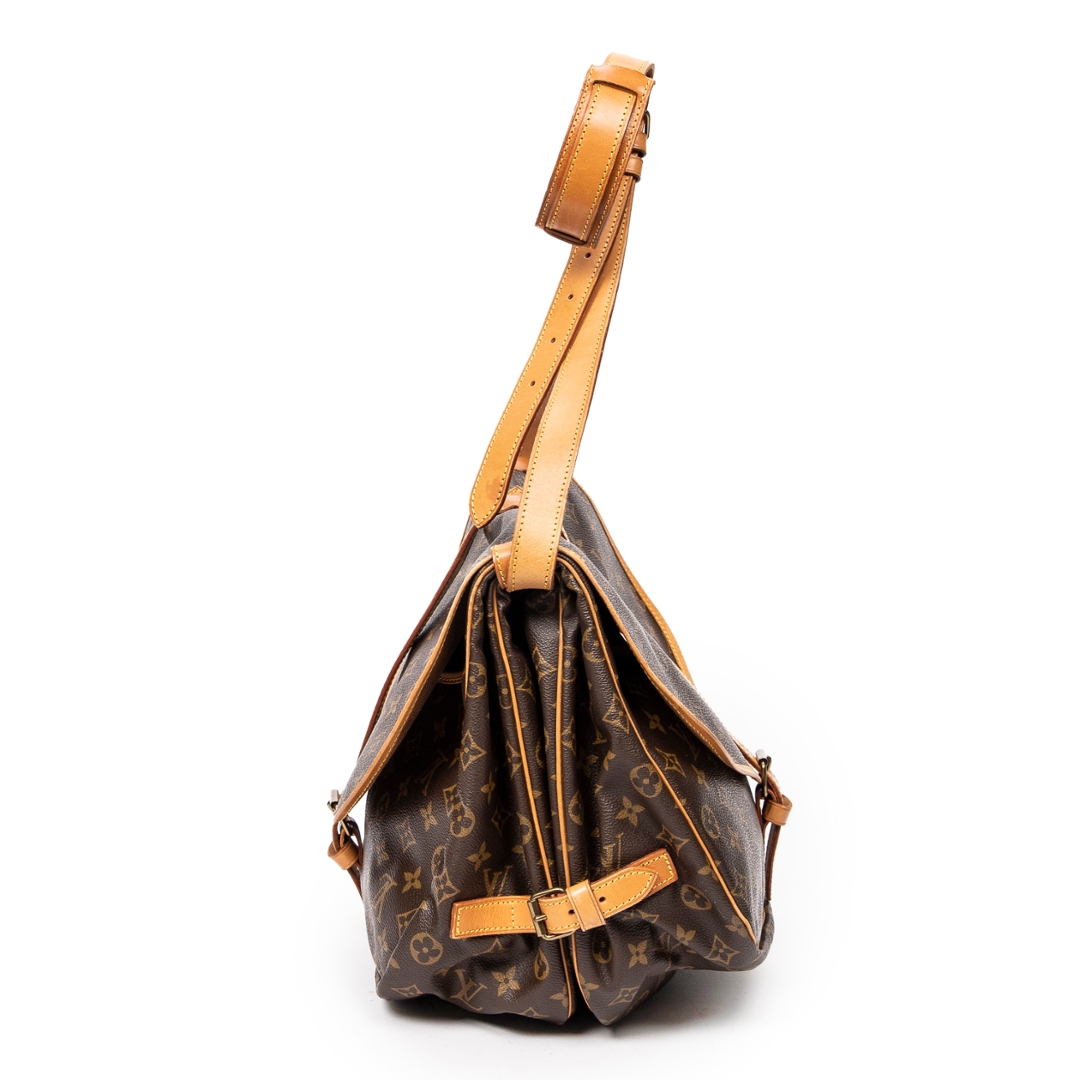 A vintage Louis Vuitton monogram coated canvas Saumur bag with a certificate of authenticity, Approximately 26cm height, 35cm width.