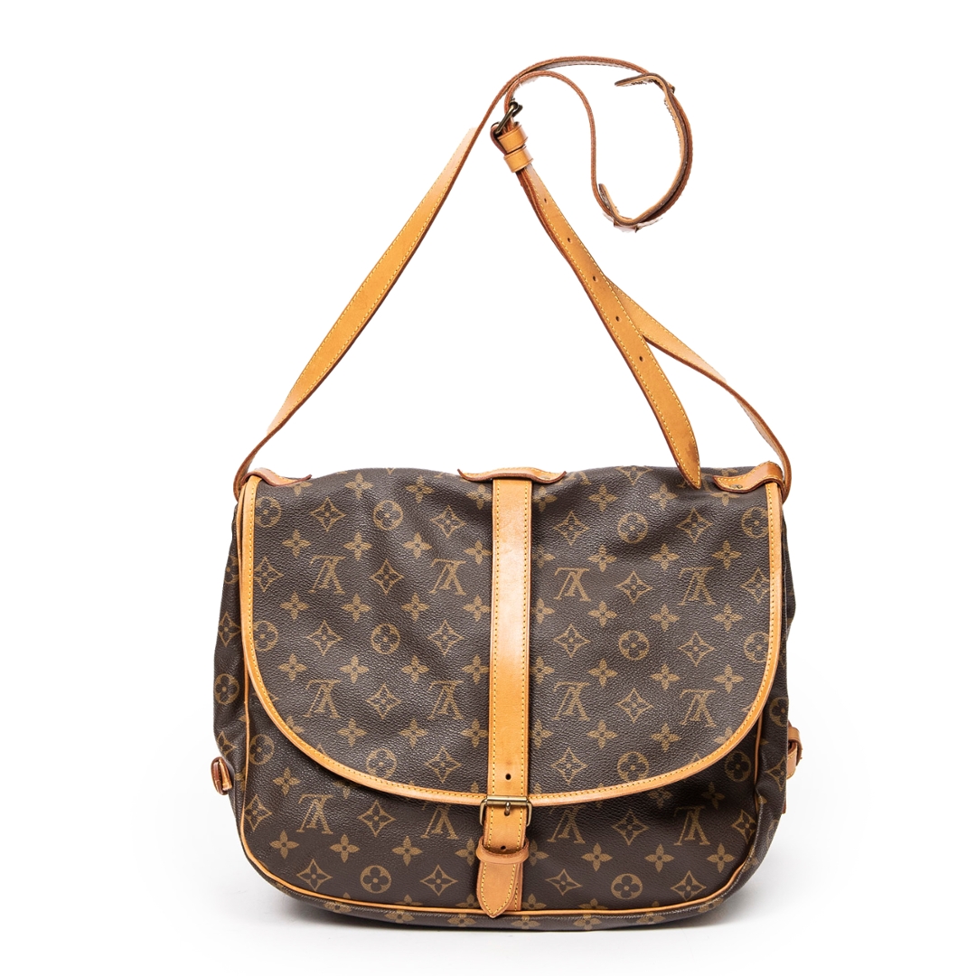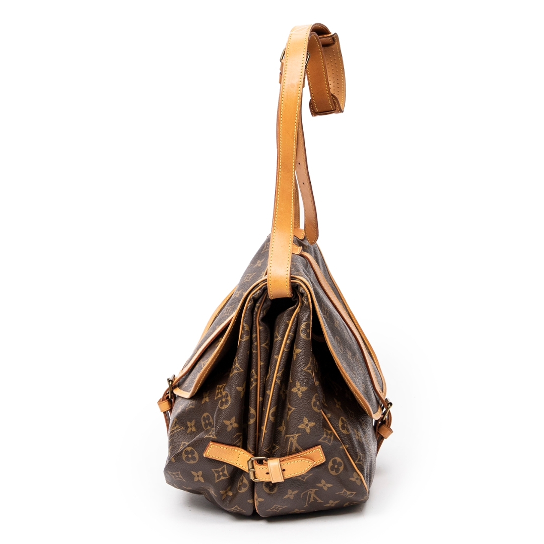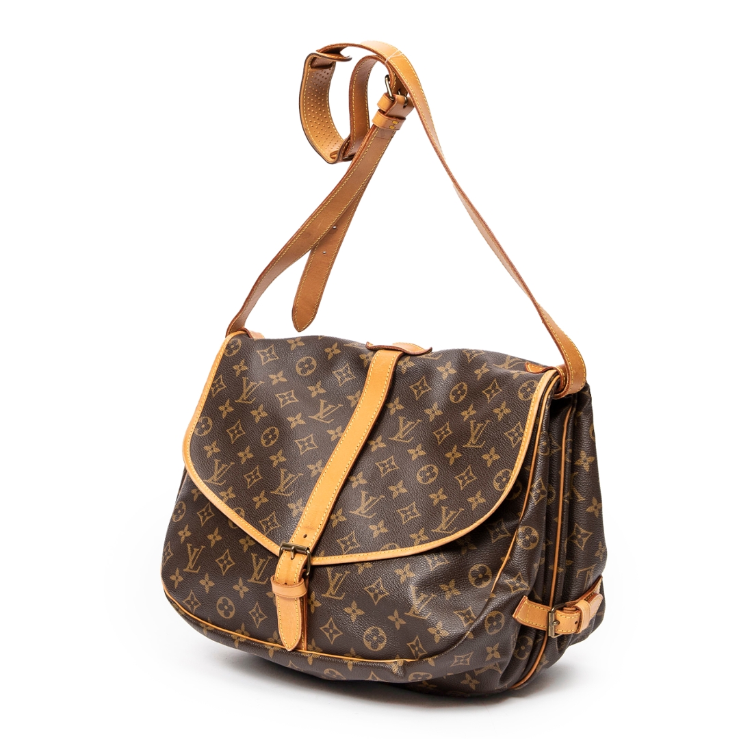 A vintage Louis Vuitton monogram coated canvas Saumur bag with a certificate of authenticity, Approximately 26cm height, 35cm width.