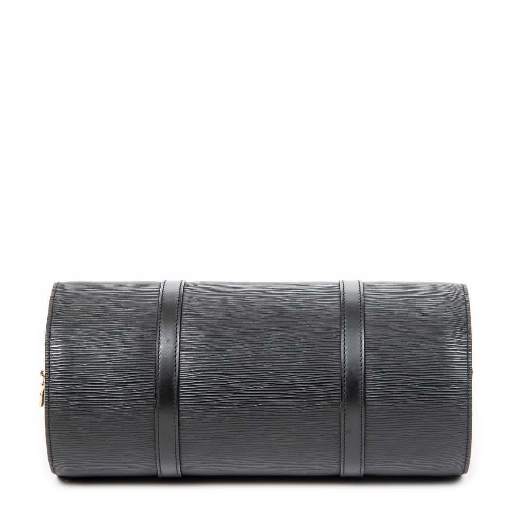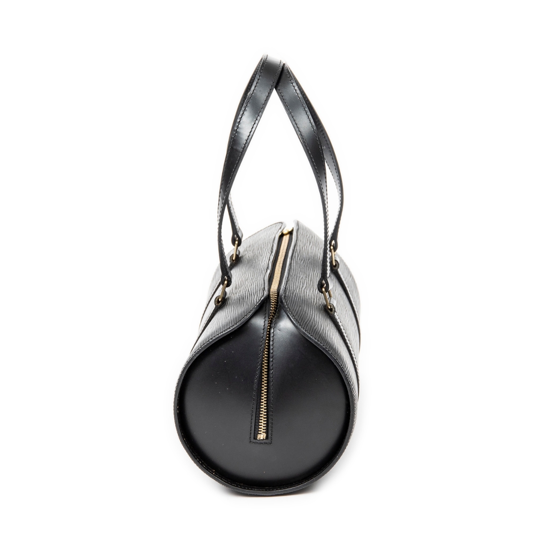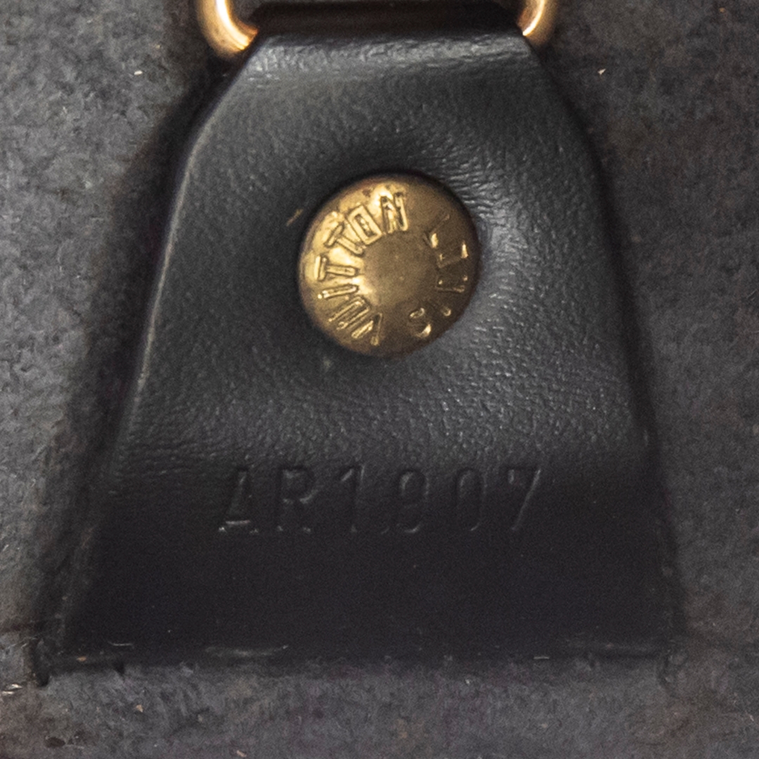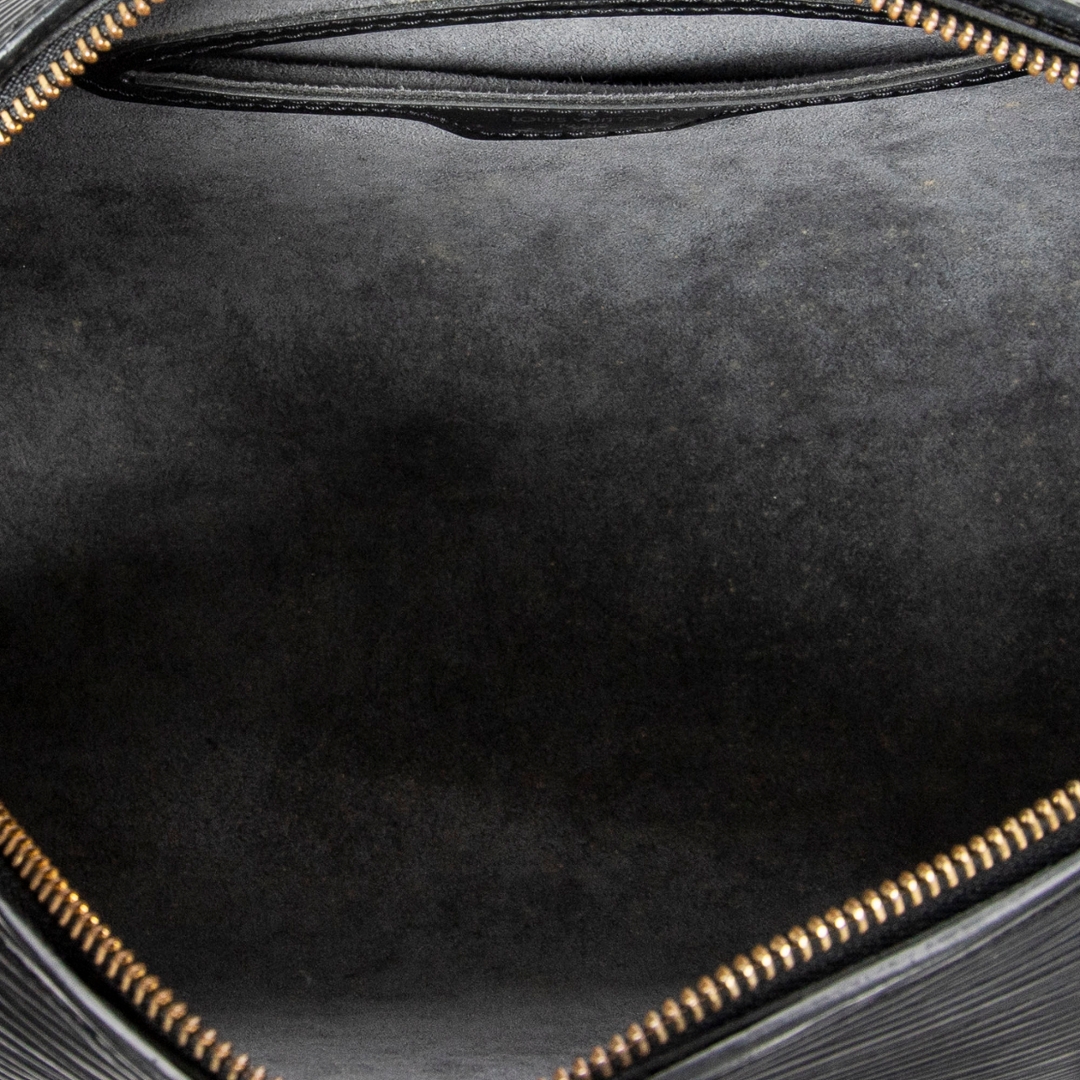 A vintage Louis Vuitton black calf leather Soufflot bag with a certificate of authenticity, Approximately 15cm height, 30cm width.