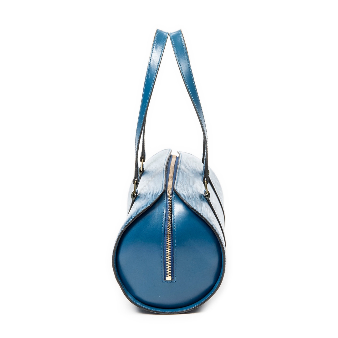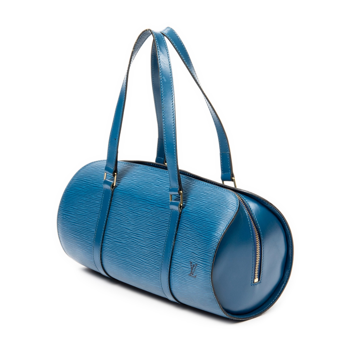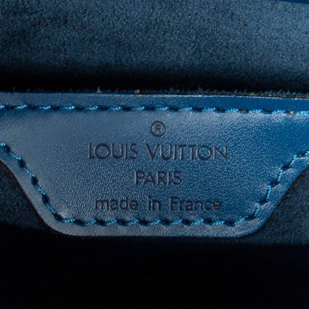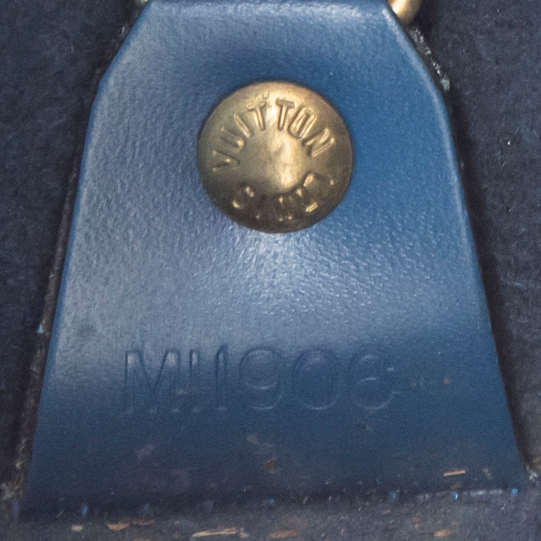 A vintage blue calf leather Louis Vuitton Soufflot bag with a certificate of authenticity, Approximately 14.5cm height, 30cm width.