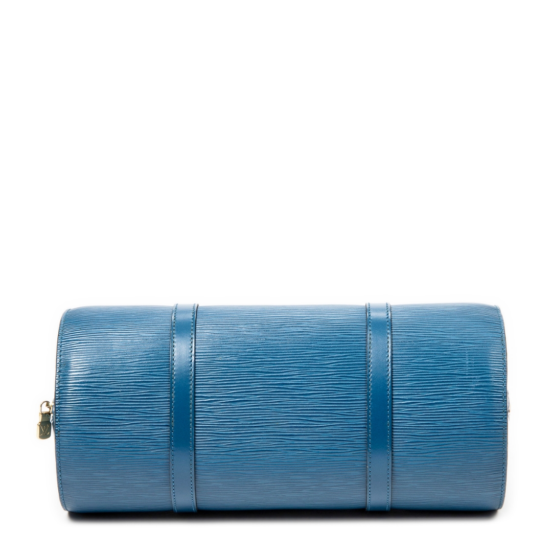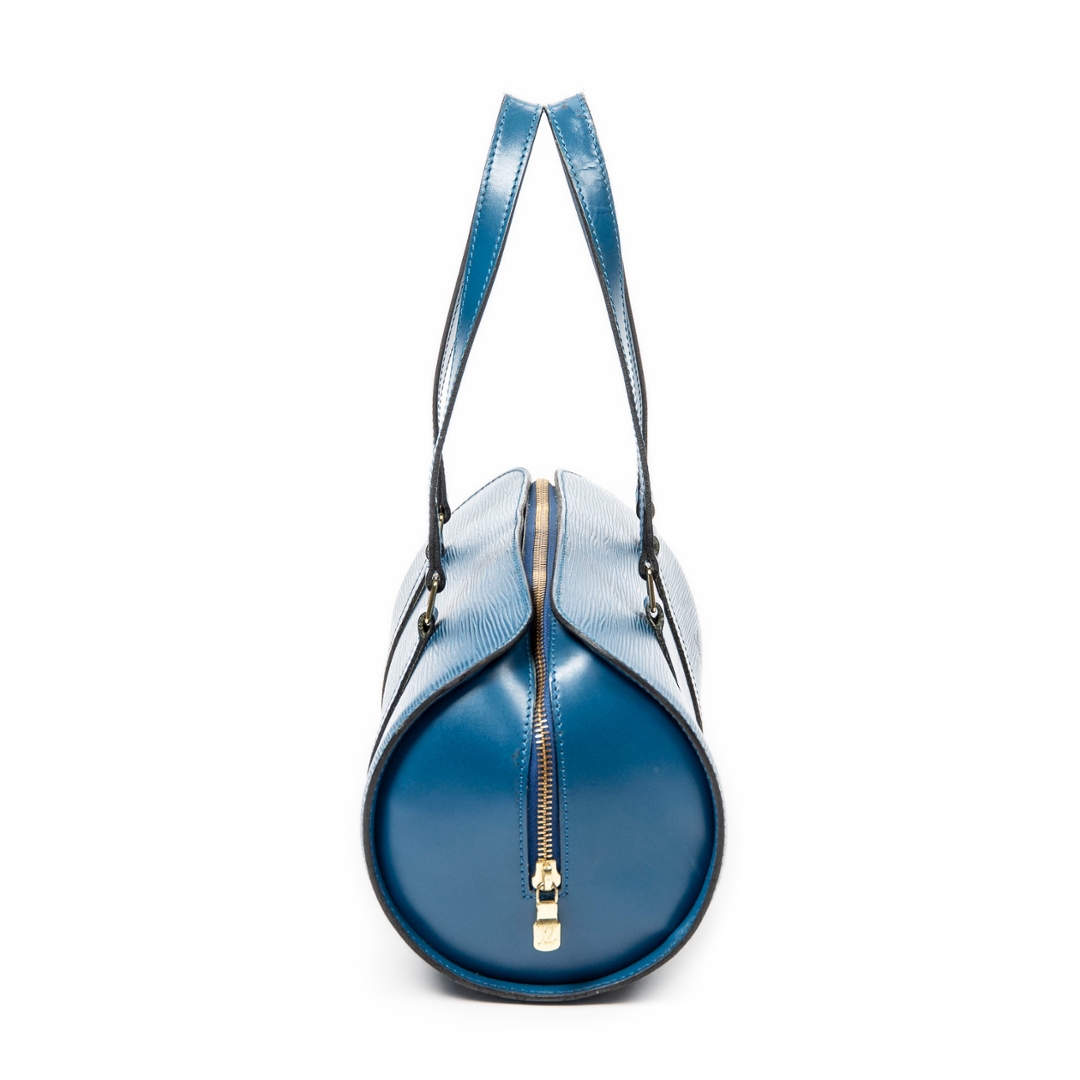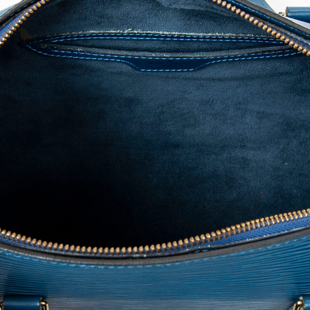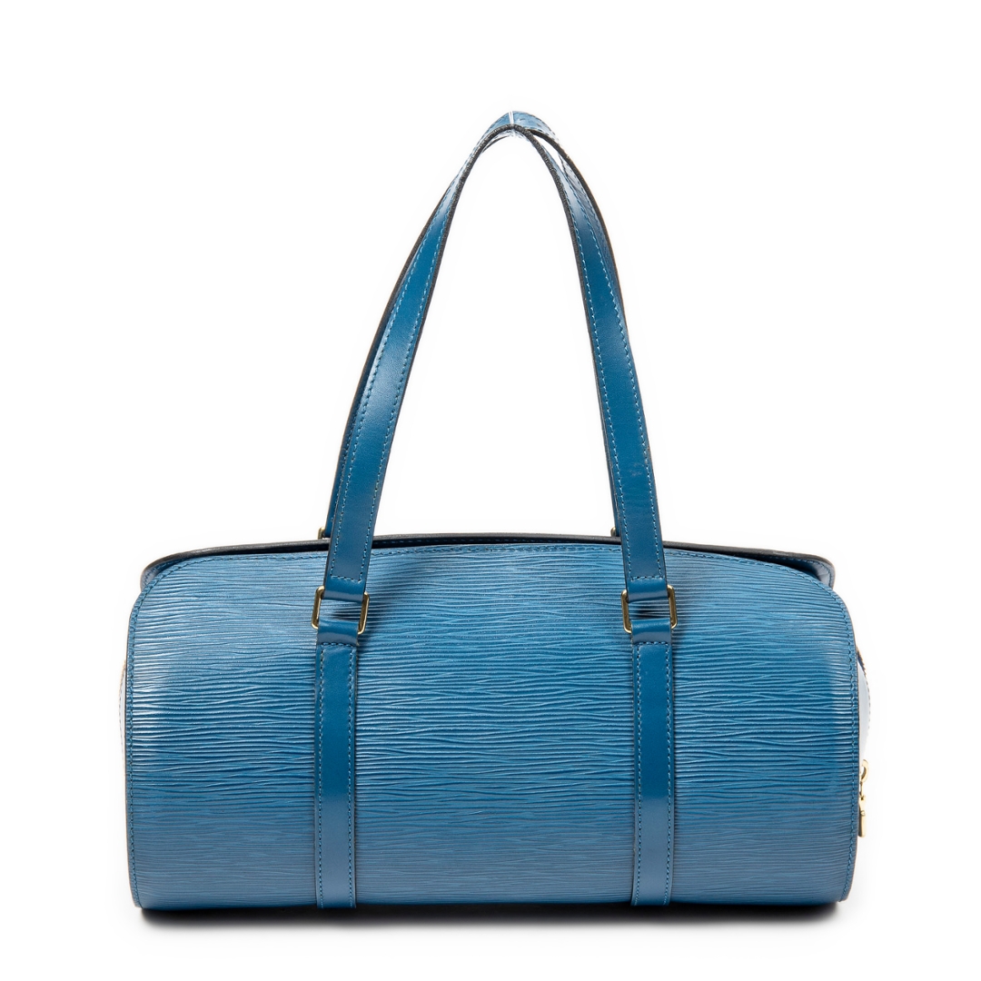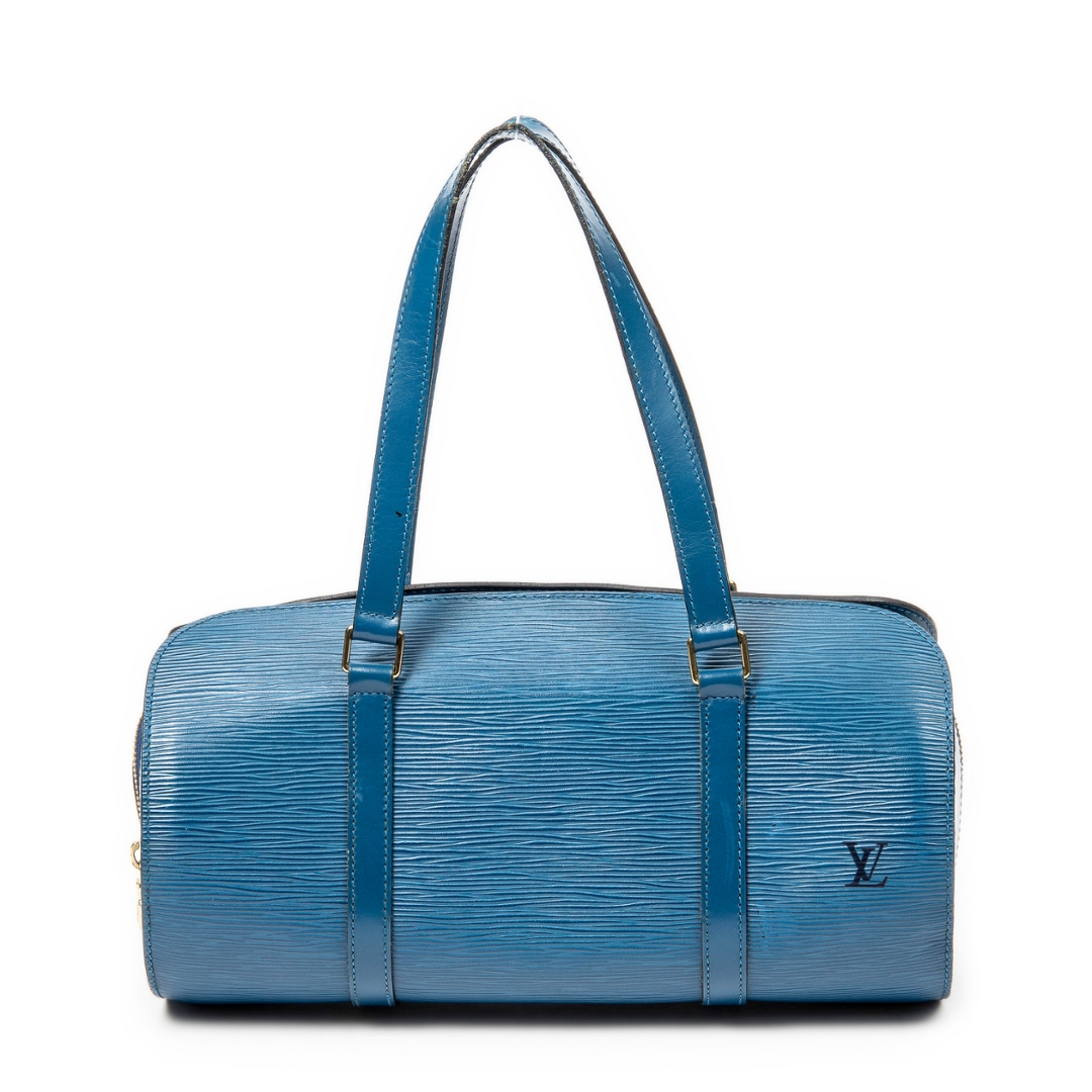 A vintage blue calf leather Louis Vuitton Soufflot bag with a certificate of authenticity, Approximately 14.5cm height, 30cm width.