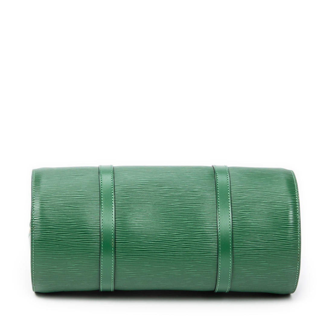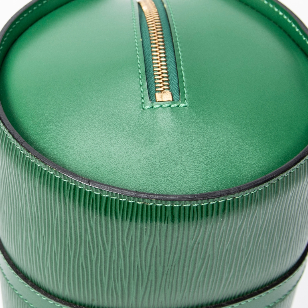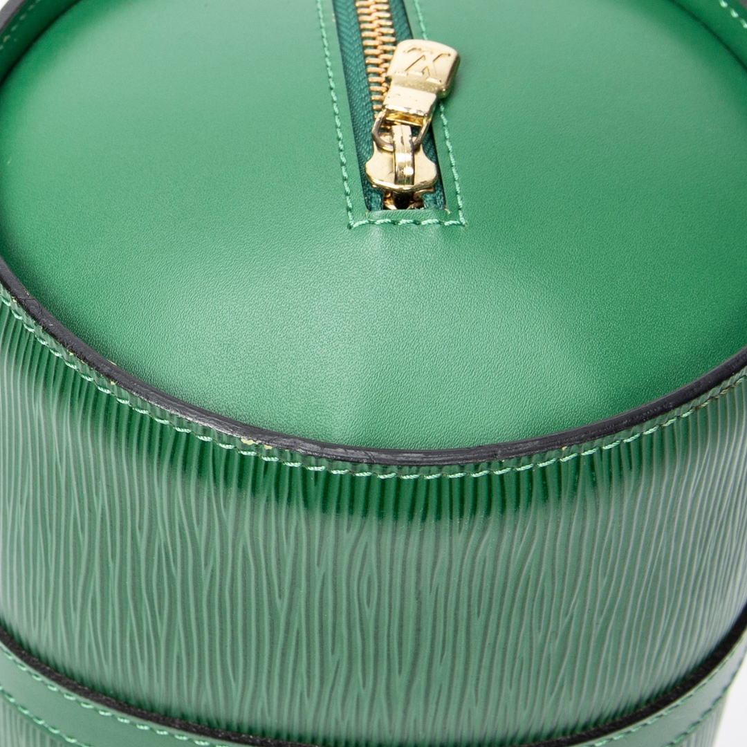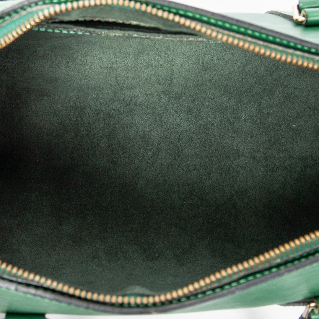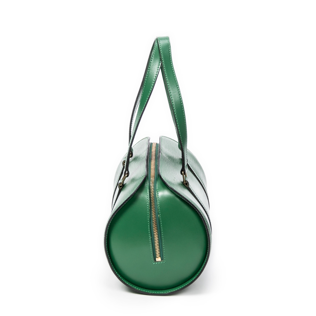 A vintage Louis Vuitton green calf leather Soufflot bag with a certificate of authenticity, Approximately 15cm height, 30cm width.