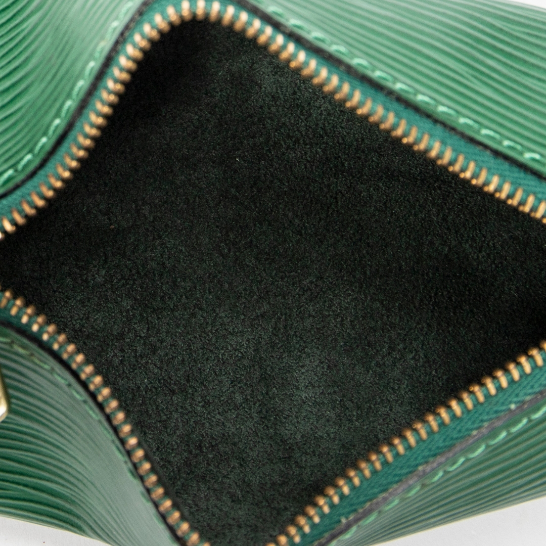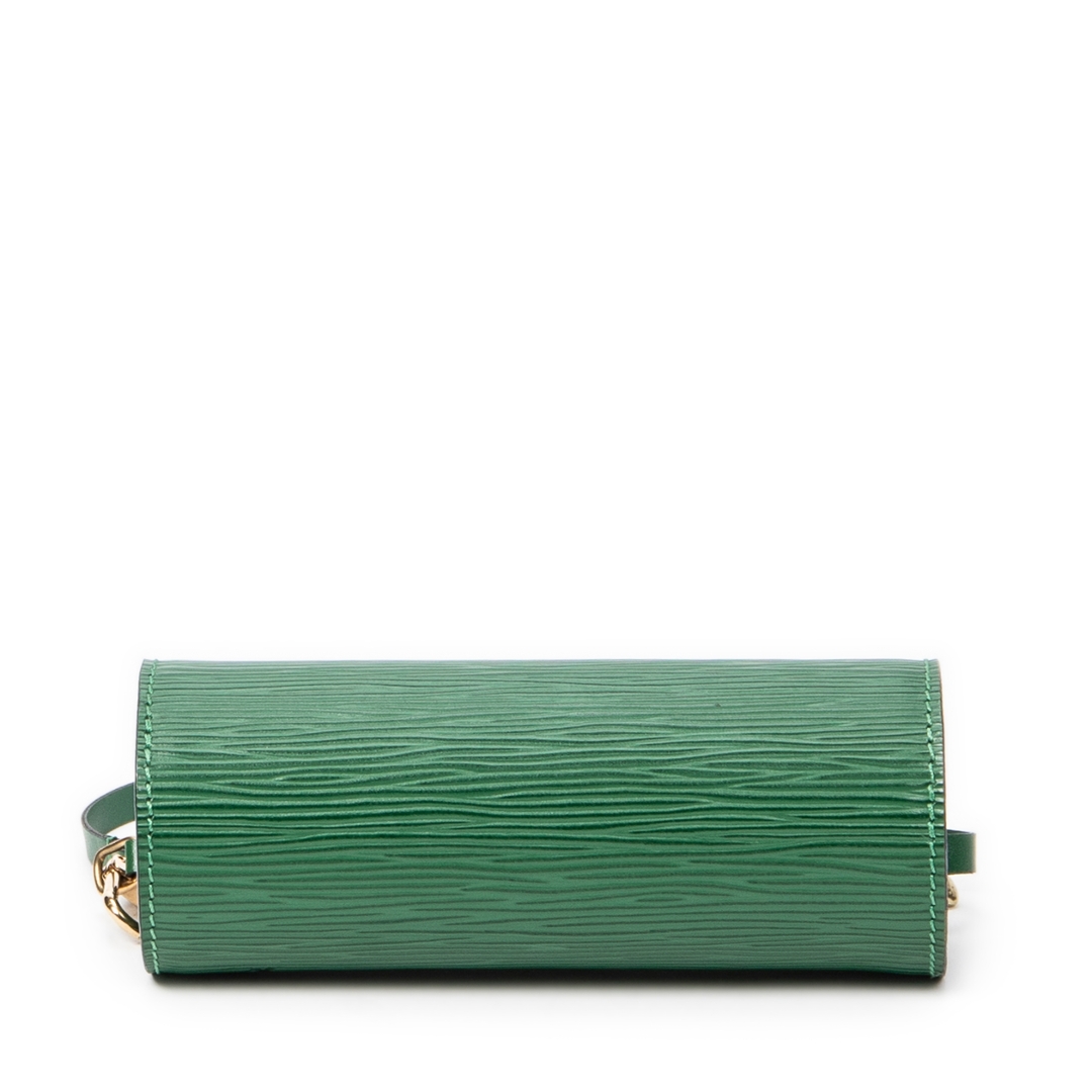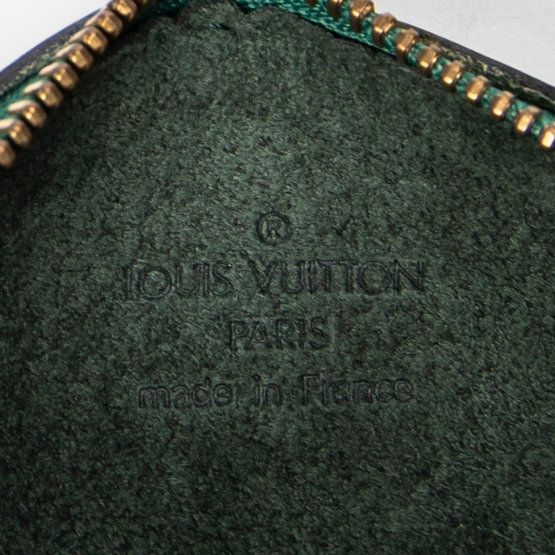 A vintage Louis Vuitton green calf leather Soufflot Pouch bag with a certificate of authenticity, Approximately 29cm height, 50cm width.
