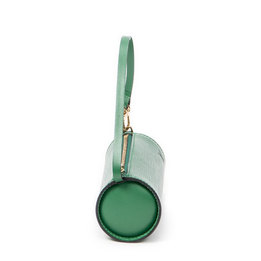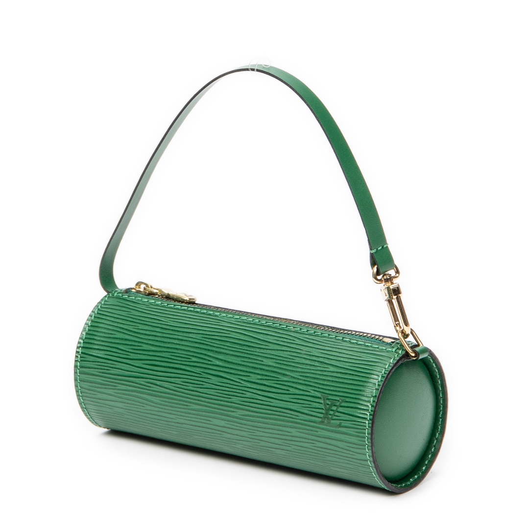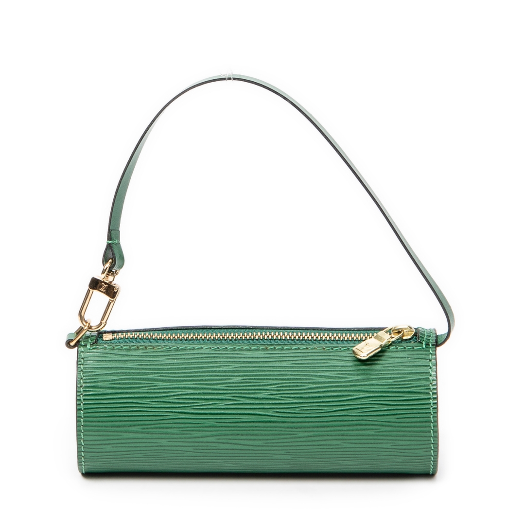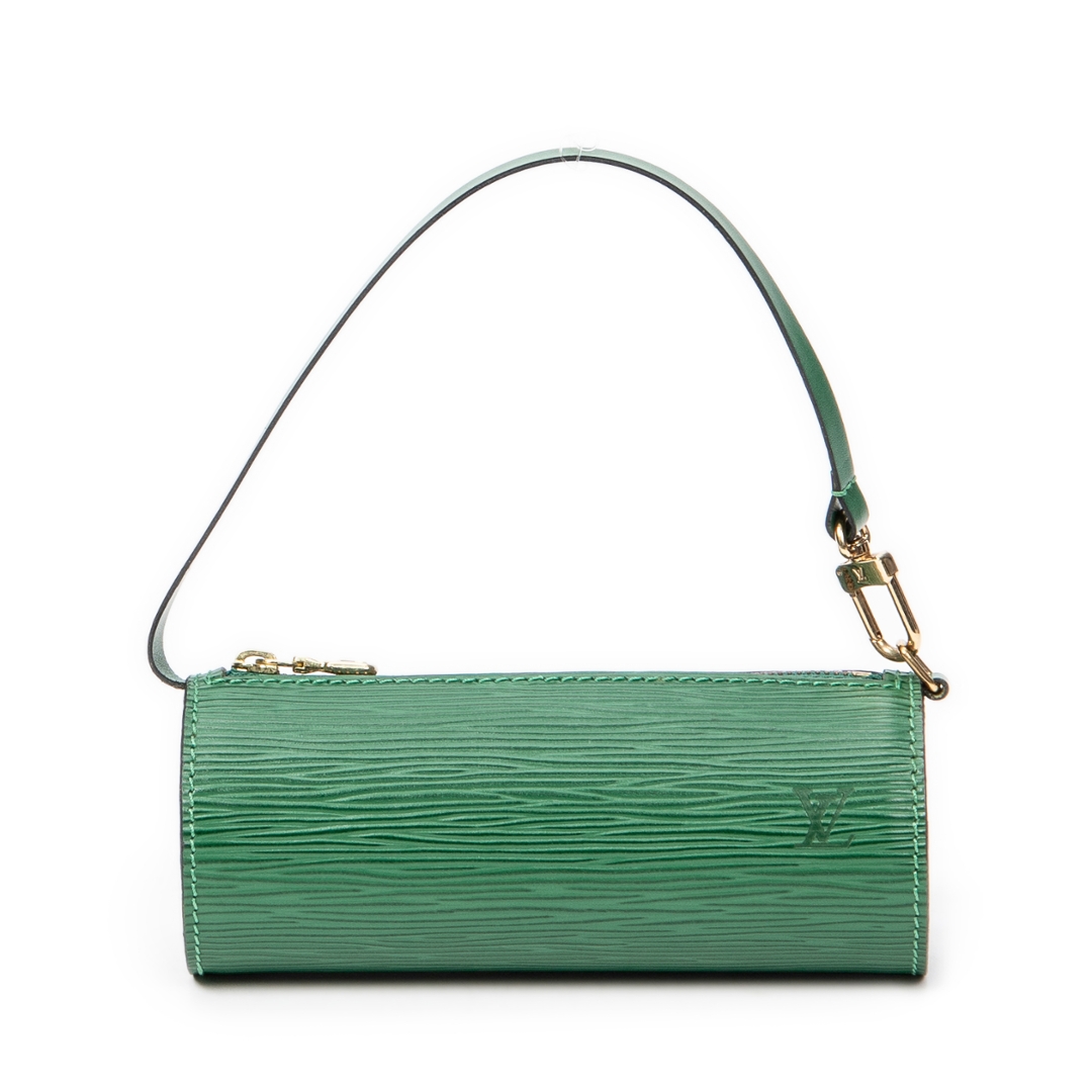 A vintage Louis Vuitton green calf leather Soufflot Pouch bag with a certificate of authenticity, Approximately 29cm height, 50cm width.