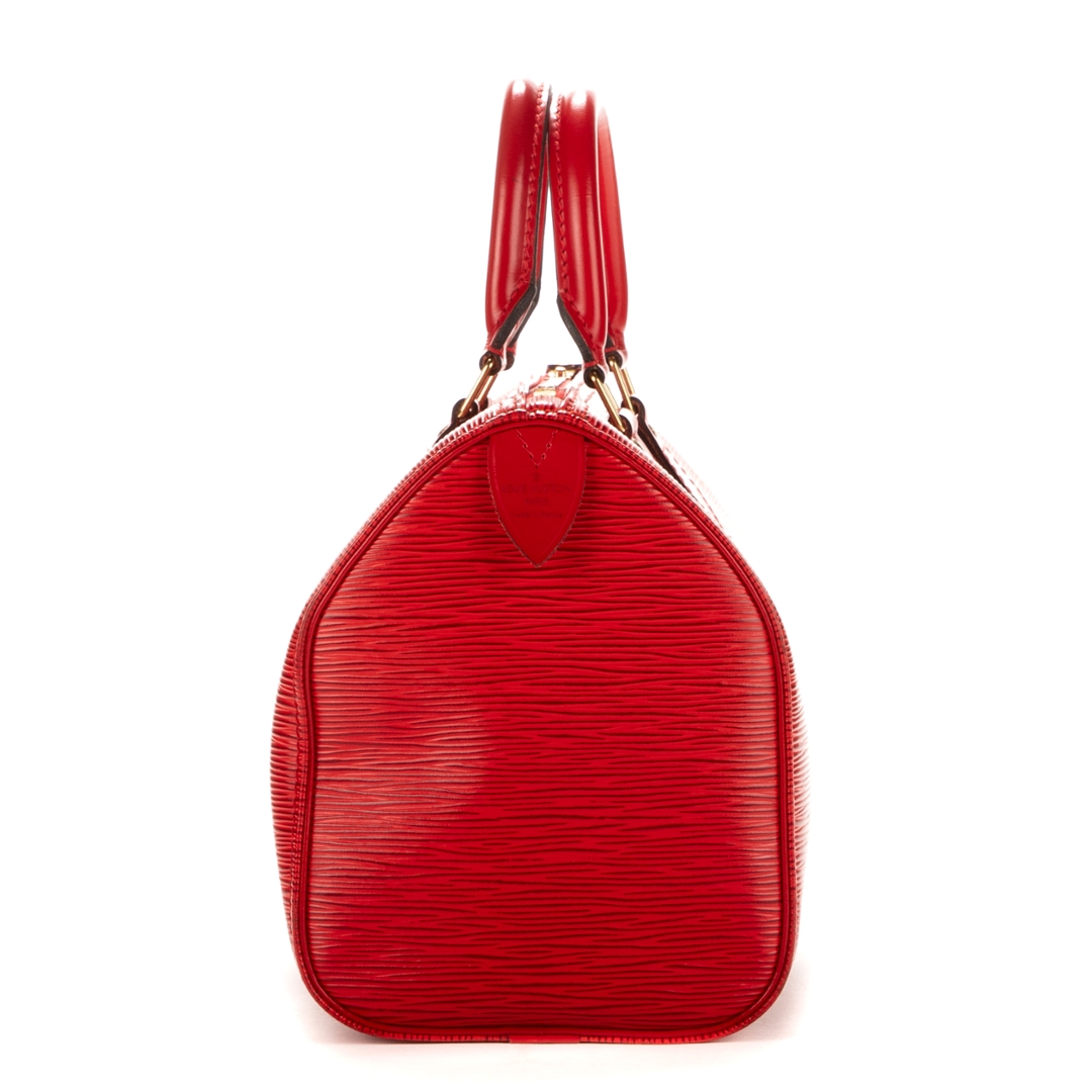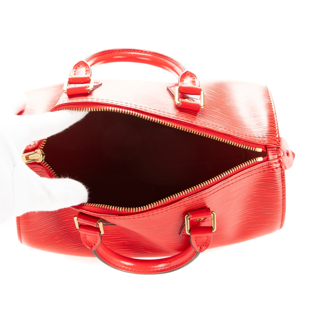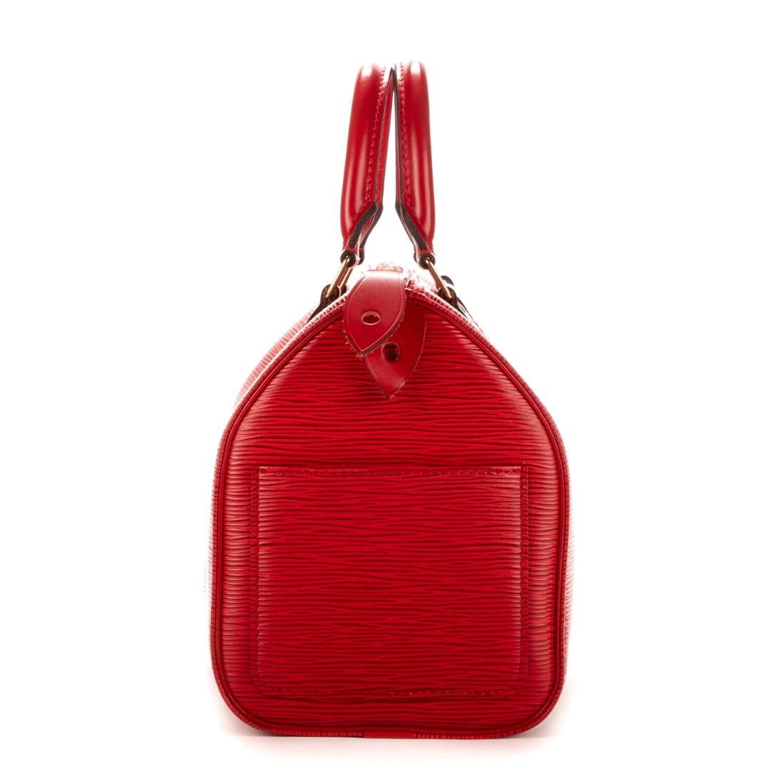 Graded A, this vintage example shows light signs of previous use but remains in attractive, well-preserved condition throughout. With its bold colour, classic Speedy silhouette and verified authenticity, this Epi leather version stands out as an appealing choice for collectors or anyone seeking a distinctive, stylish and enduring Louis Vuitton accessory.