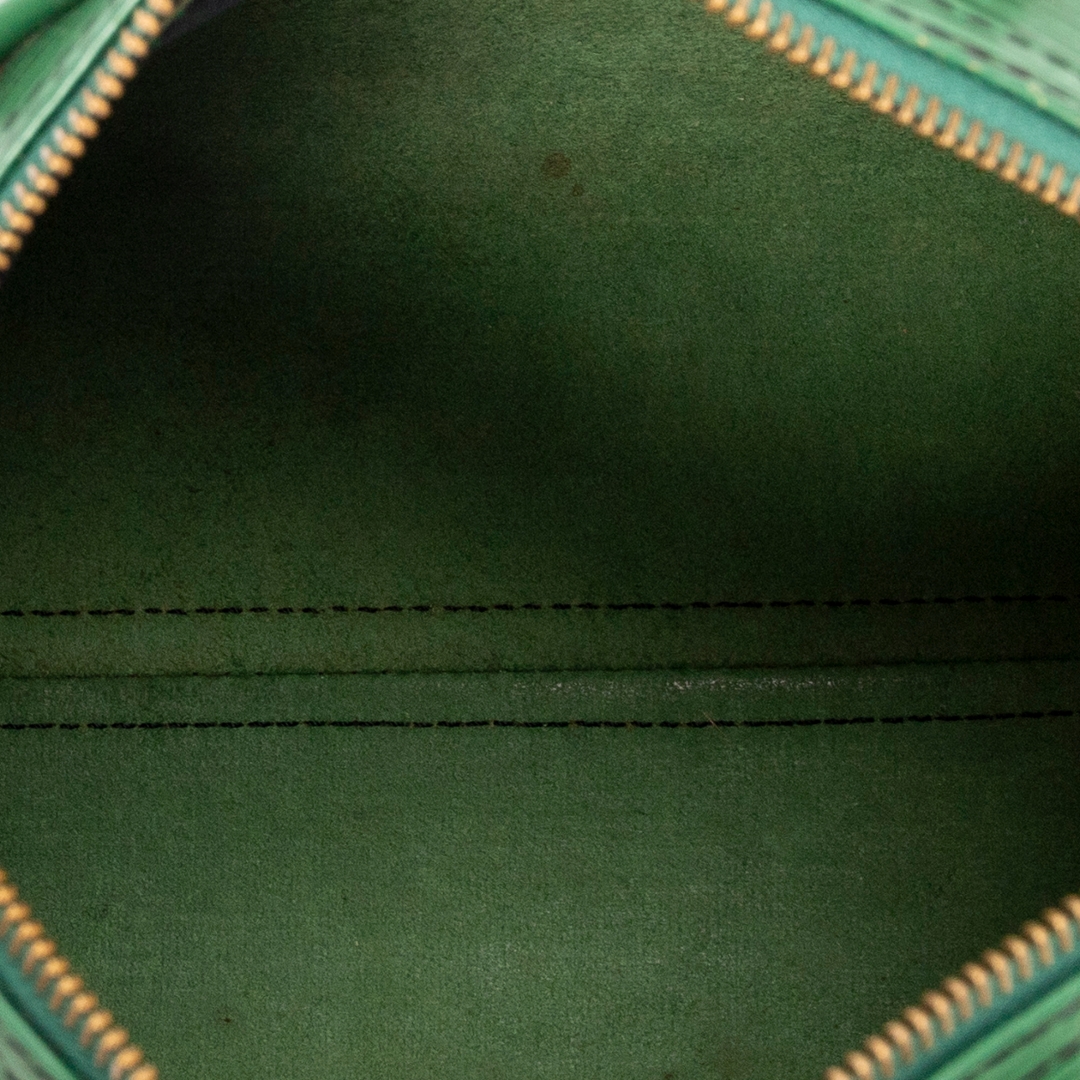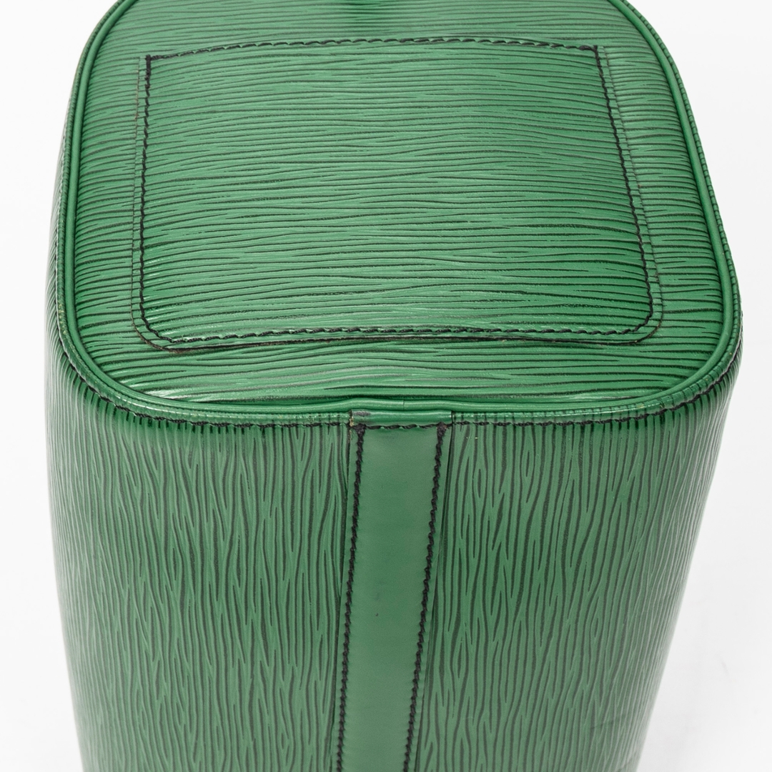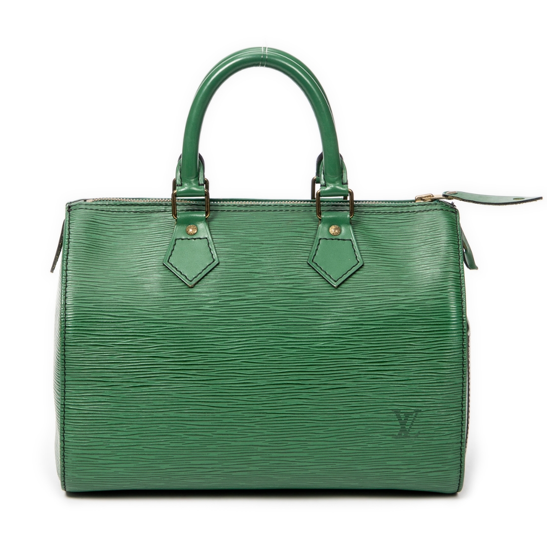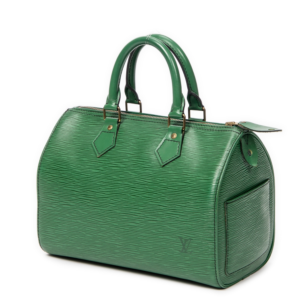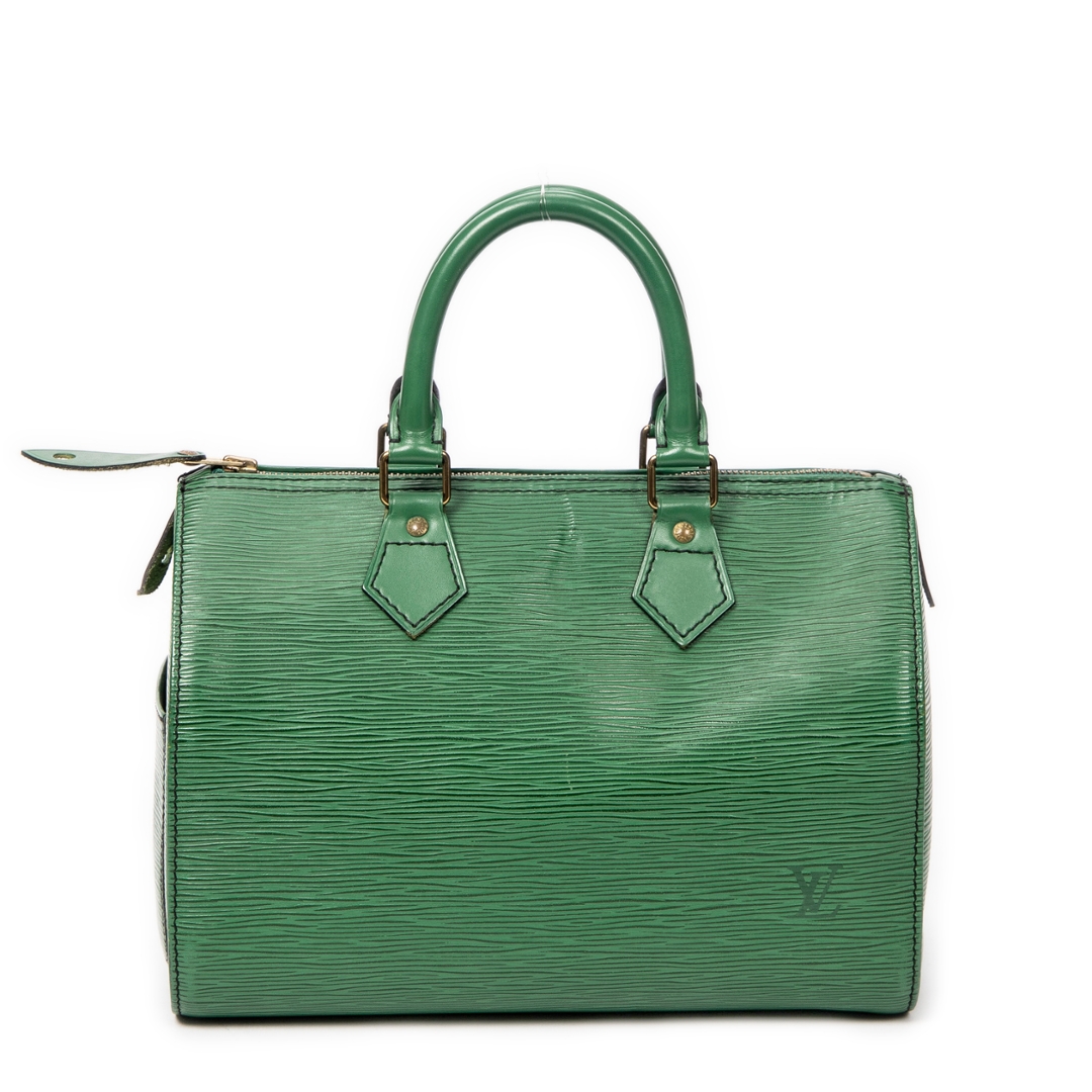 A vintage Louis Vuitton green calf leather Speedy Black Stitching bag with a certificate of authenticity, Approximately 19cm height, 27cm width.