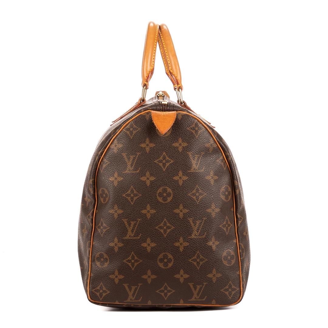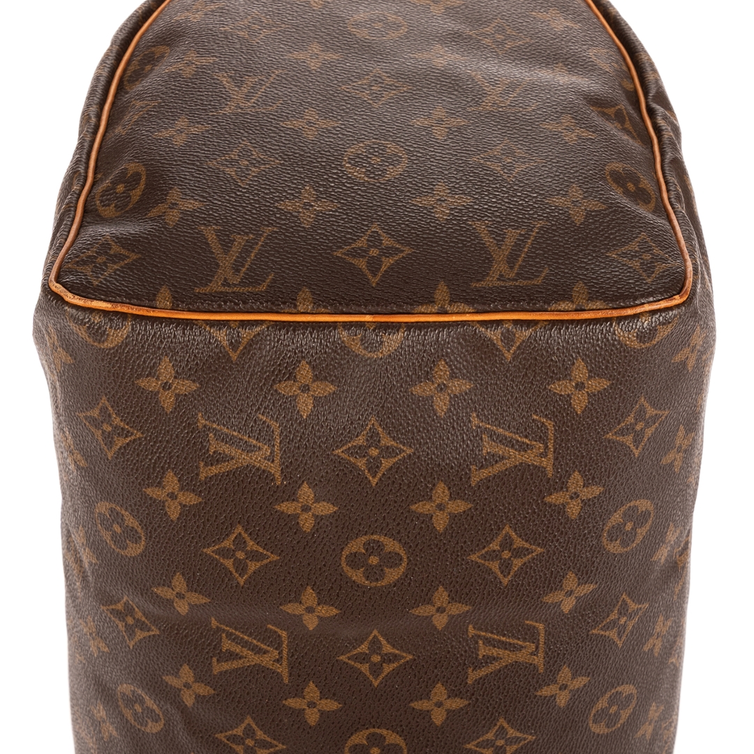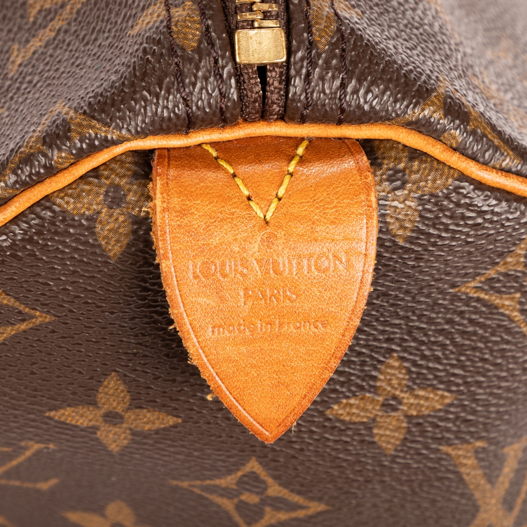 A vintage Louis Vuitton monogram coated canvas Speedy bag with a certificate of authenticity, Approximately 22cm height, 40cm width.