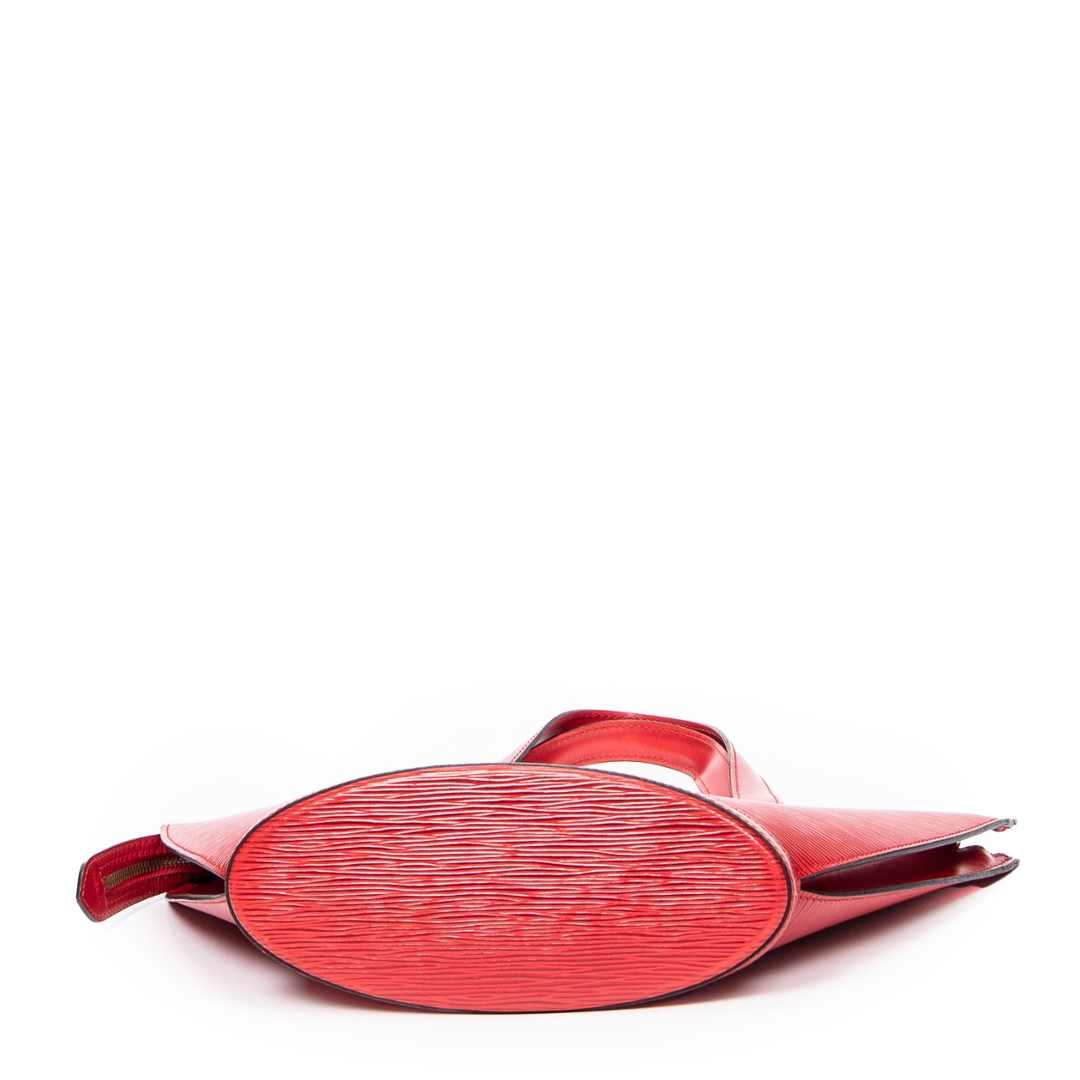 A vintage Louis Vuitton red calf leather St-Jacques bag with a certificate of authenticity, Approximately 24cm height, 23cm width.
