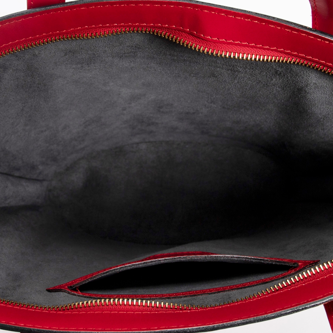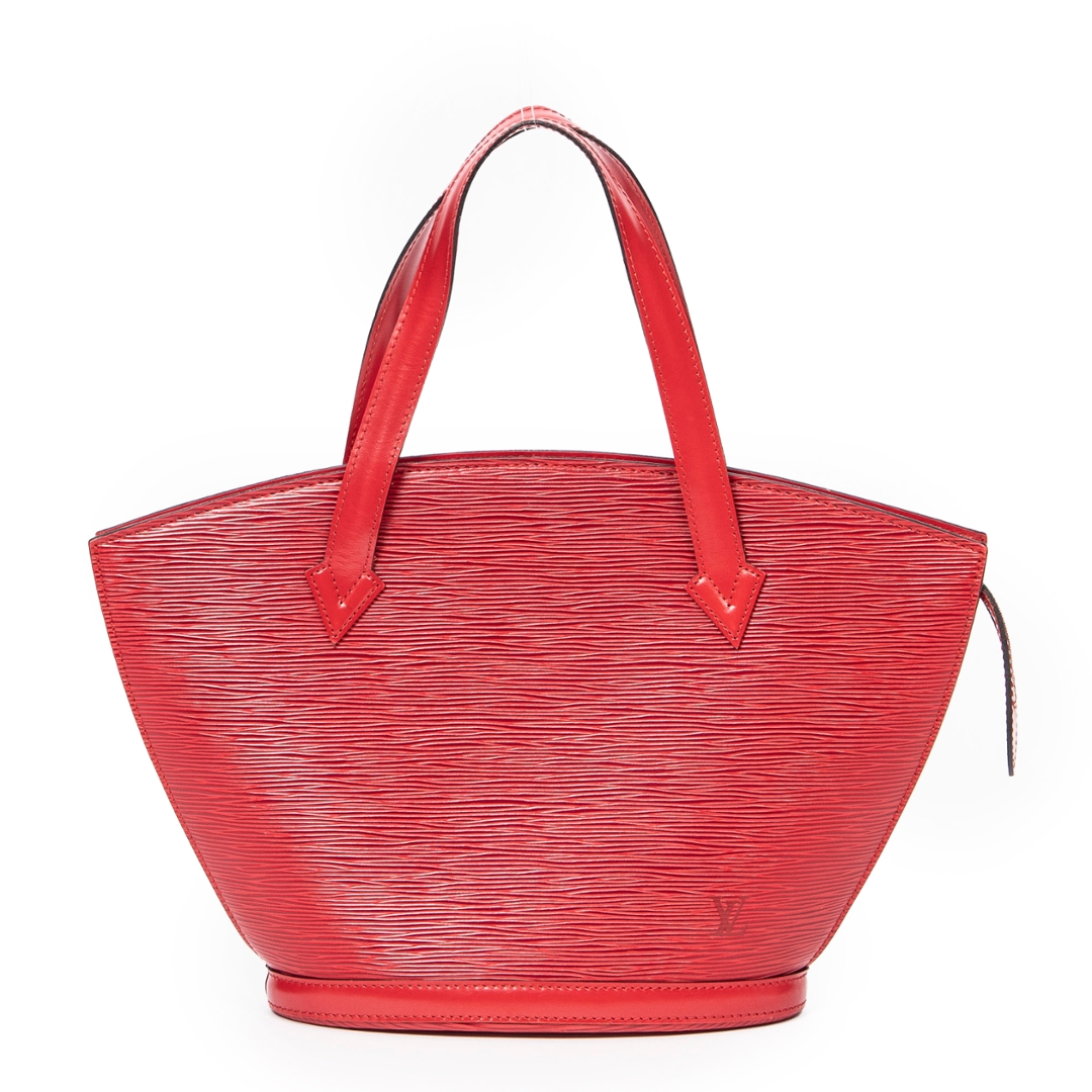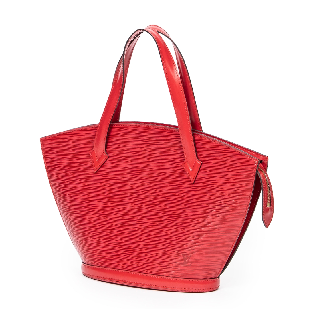 A vintage Louis Vuitton red calf leather St-Jacques bag with a certificate of authenticity, Approximately 24cm height, 23cm width.