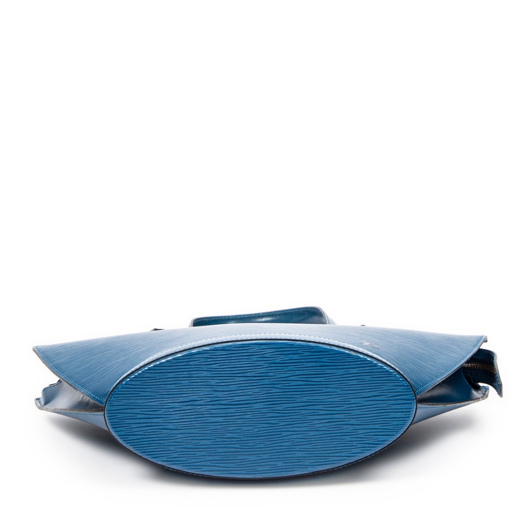 A vintage Louis Vuitton blue calf leather St-Jacques bag with a certificate of authenticity. Approximately 24cm height, 23cm width.
