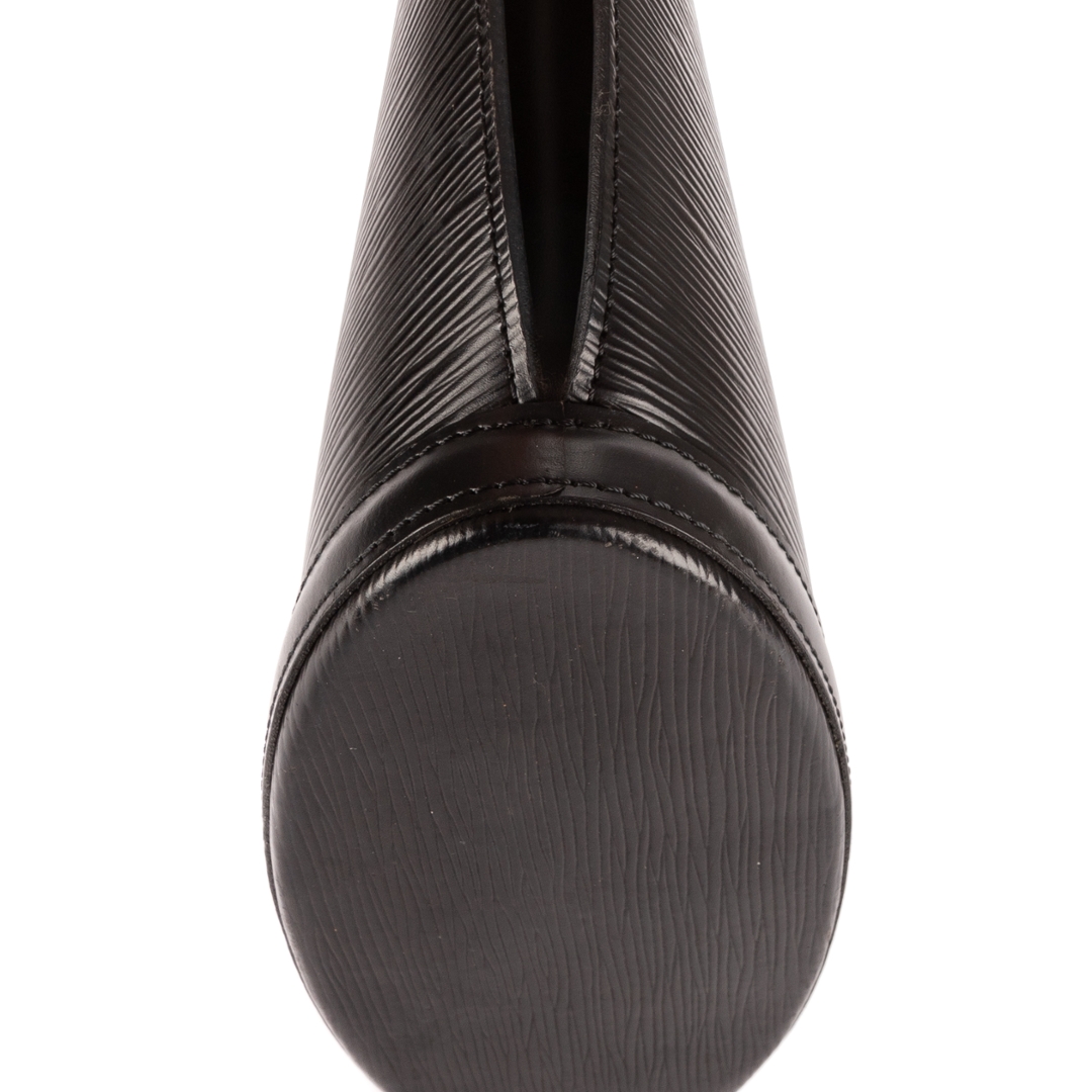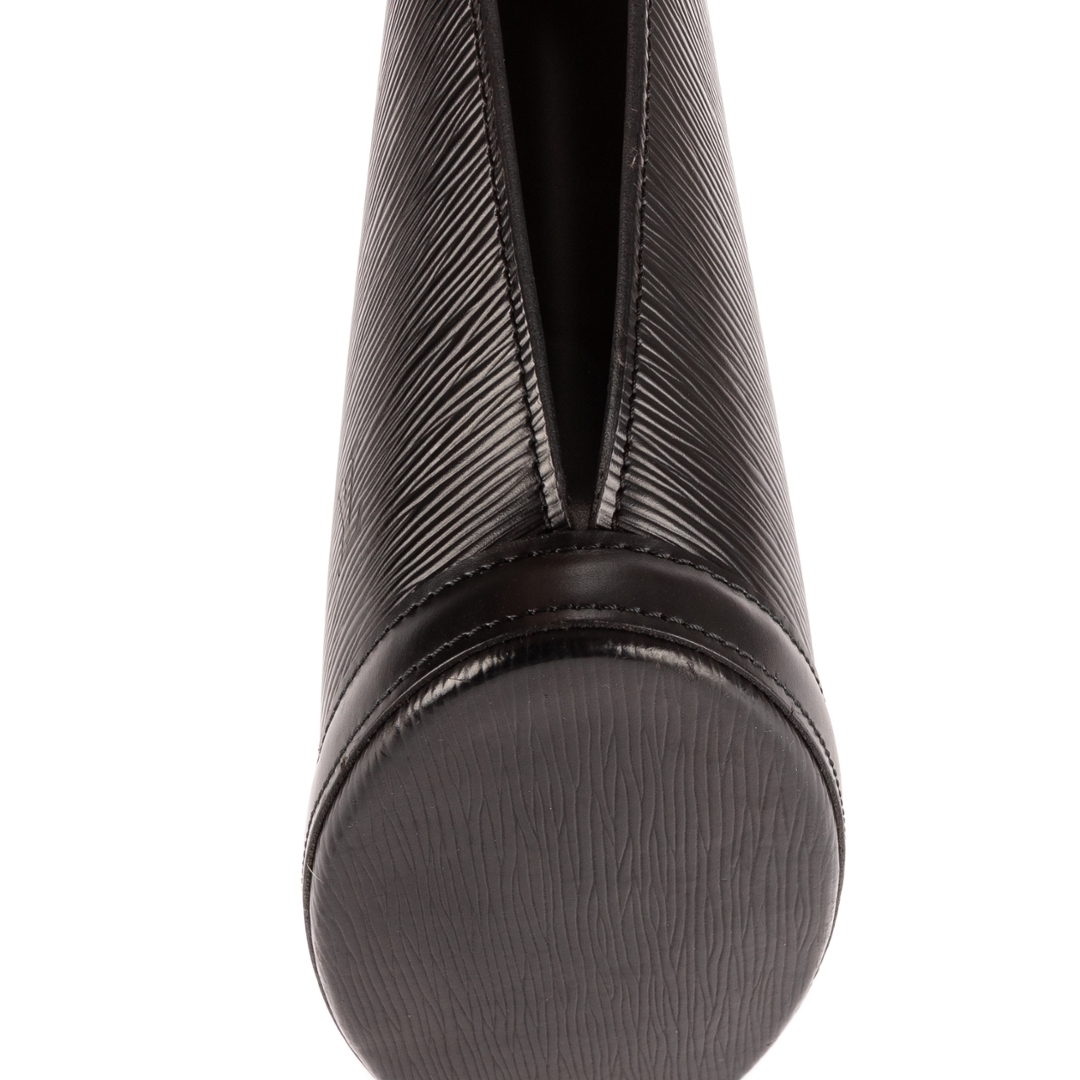 A vintage Louis Vuitton black calf leather St-Jacques Shopping bag with a certificate of authenticity, this elegant piece showcases the clean lines and sculptural silhouette that make the St-Jacques one of Louis Vuitton’s most distinctive Epi leather designs. Crafted in deep black Epi leather, the textured exterior offers exceptional durability while adding depth and refinement to the bag’s striking tapered shape. The discreet LV embossing near the base provides a subtle yet unmistakable nod to the house’s heritage.