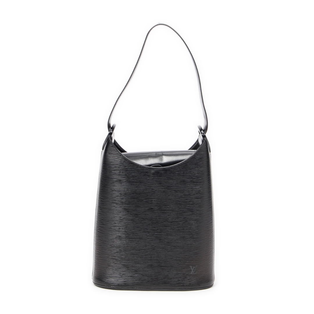 A vintage Louis Vuitton black calf leather Verseau bag with a certificate of authenticity, Approximately 32cm height, 26cm width.