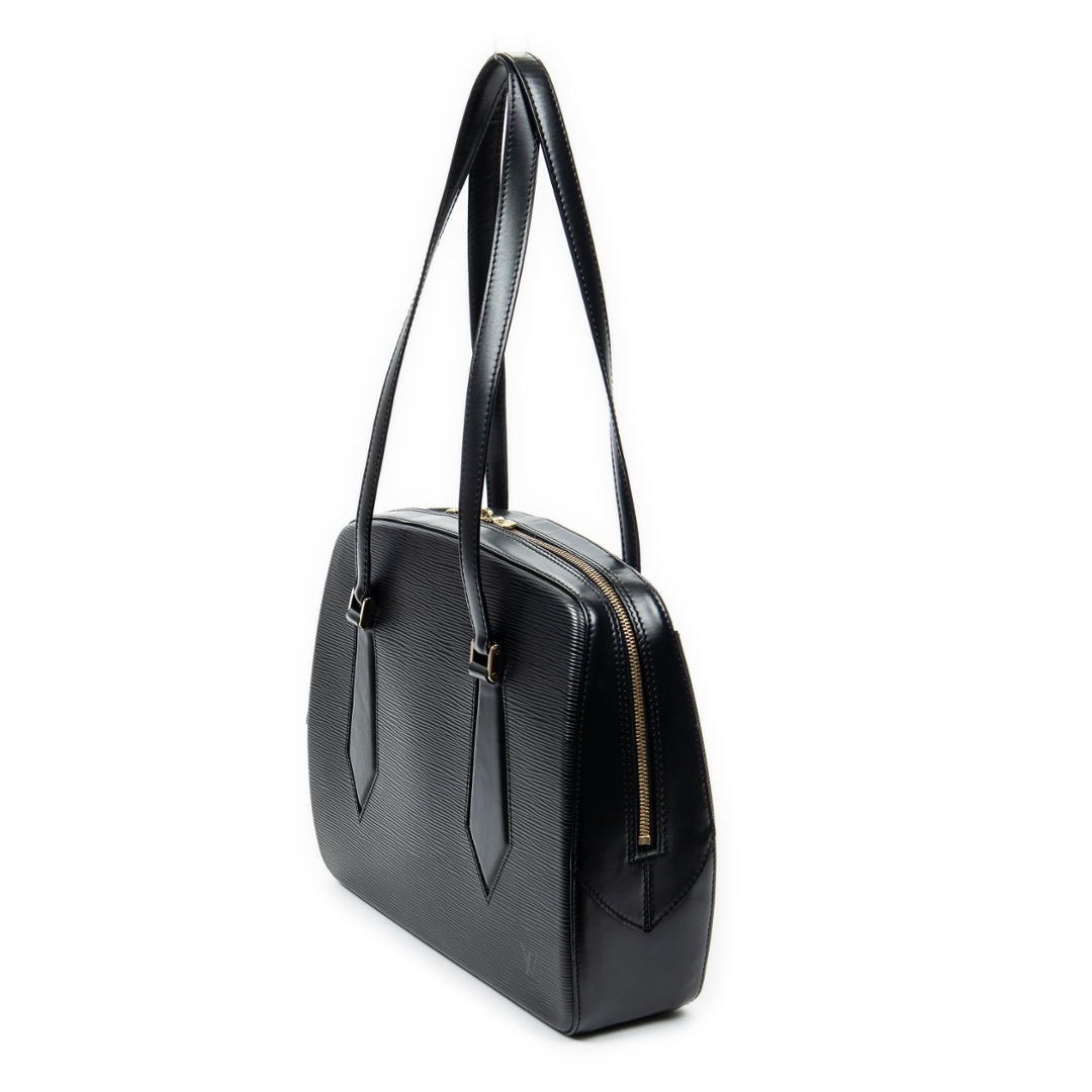 A vintage Louis Vuitton black calf leather Voltaire bag with a certificate of authenticity. Approximately 25cm height, 33cm width.