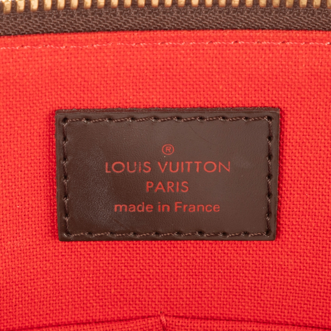 A vintage Louis Vuitton Damier coated canvas Westminster bag with a certificate of authenticity, this elegant piece showcases the refined structure and understated sophistication that define Louis Vuitton’s classic tote designs. Crafted in the signature Damier Ebene coated canvas, it features the familiar brown checkerboard pattern paired with deep chocolate leather trim, creating a polished and timeless aesthetic. The gently pleated front adds subtle dimension, while the gold-tone hardware offers a refined finishing touch.
