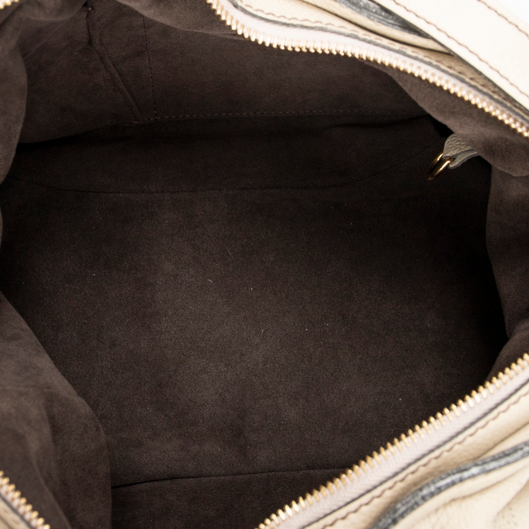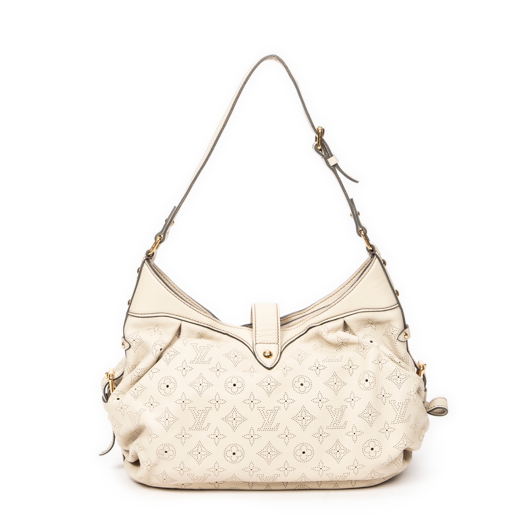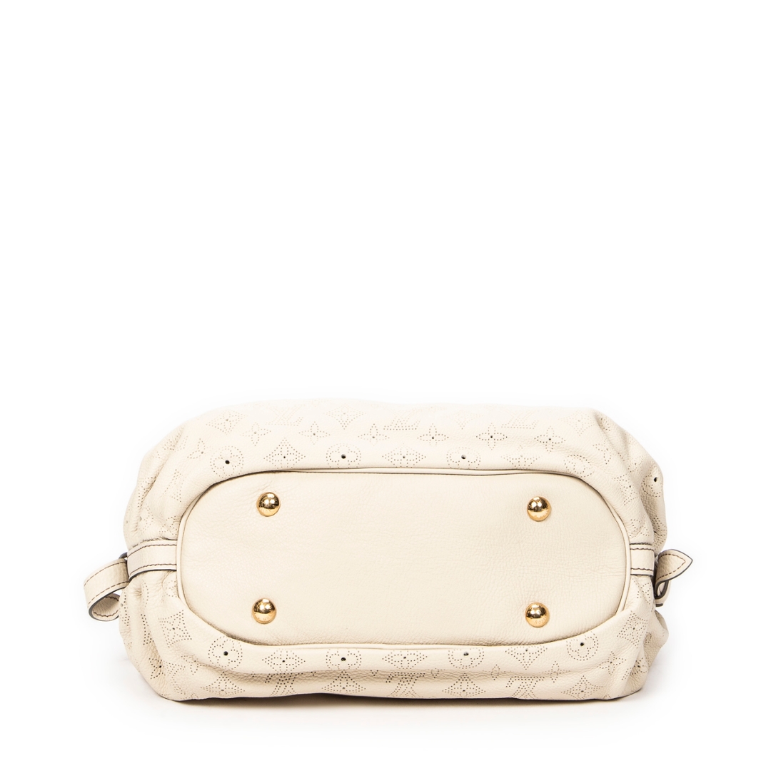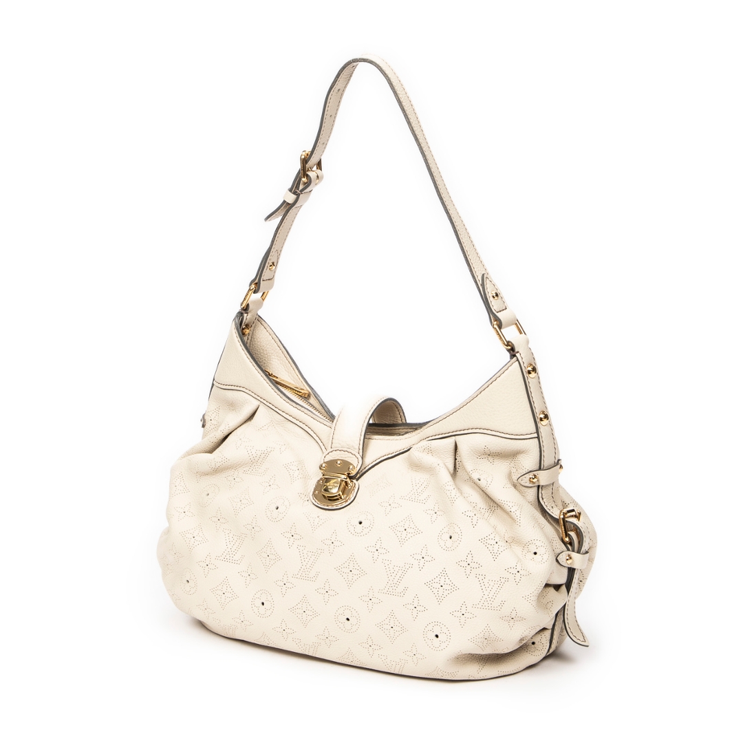 A vintage Louis Vuitton ivory calf leather XS Hobo bag with a certificate of authenticity, Approximately 30cm height, 30cm width.