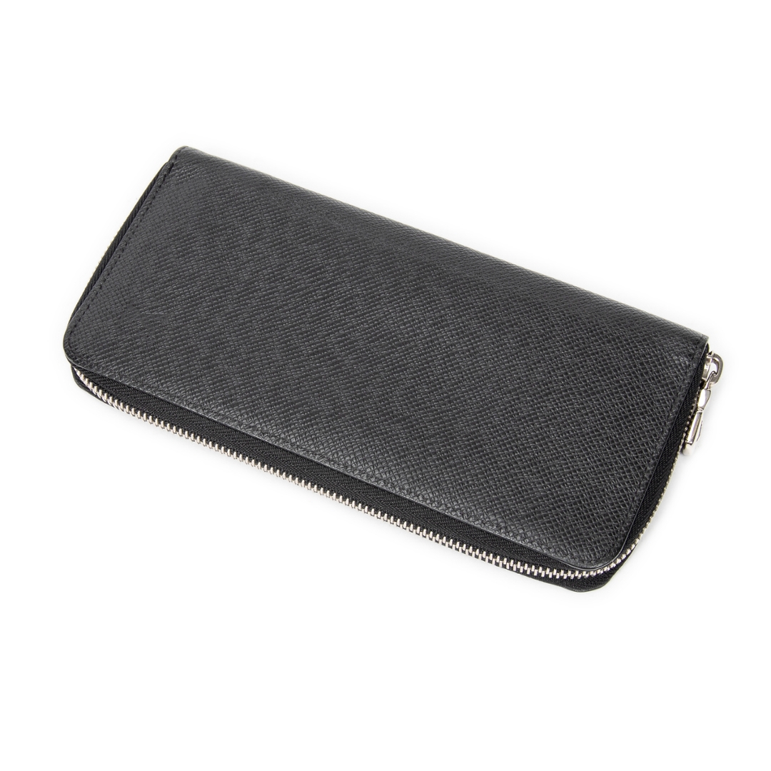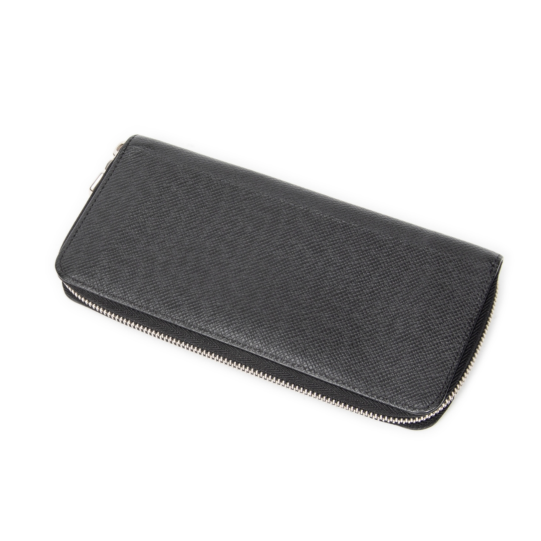 A vintage Louis Vuitton black calf leather Zippy Wallet Vertical with a certificate of authenticity. Approximately 10cm height, 20cm width.