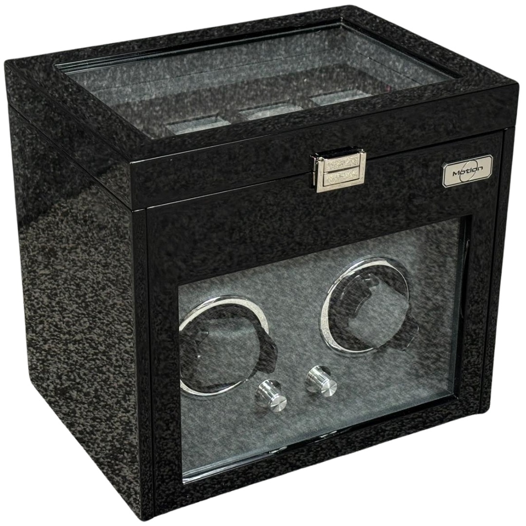 - > Motion Double Black Wooden Piano Finish Watch Winder
