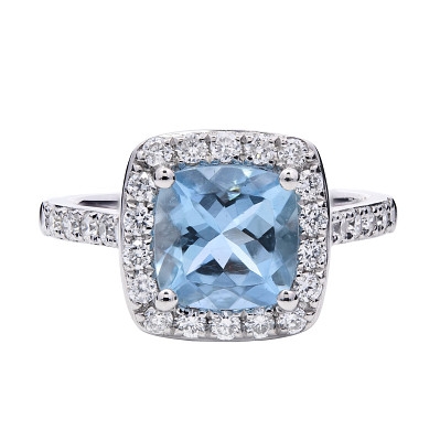 - > Natural Aquamarine 1.46ct & Diamond 0.48ct Cushion Shaped Cluster Ring