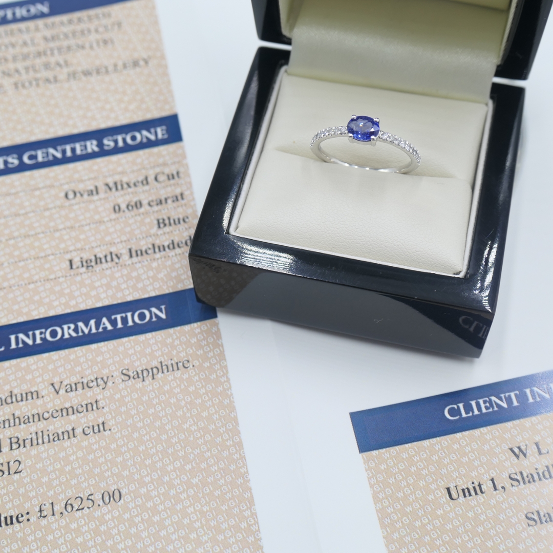 With an estimated valuation of £1,625.00, this ring offers more than just refined craftsmanship—it represents a balance of style and long-term value. The timeless pairing of sapphire and diamonds in platinum ensures this piece remains relevant for decades, while the natural diamonds provide both beauty and investment potential, making it a wise and elegant choice.
