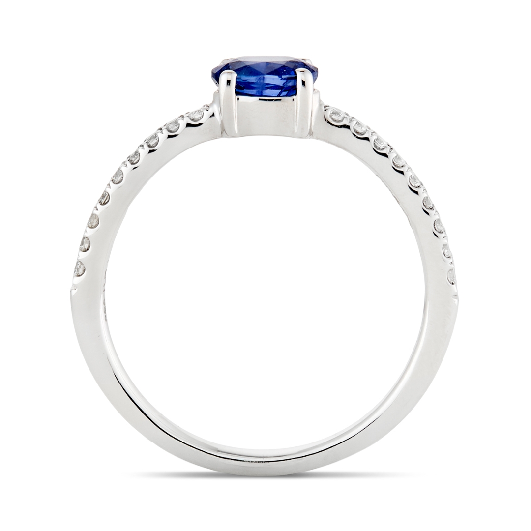 - > Natural Blue Sapphire 0.60ct & Diamond 0.16ct Oval Shaped Cluster Ring