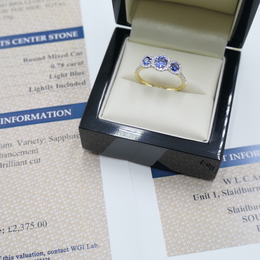 Natural diamonds are admired for their eternal beauty and ability to retain value over time, while sapphires bring a touch of colour and prestige to any collection. With a valuation of £2,375, this ring represents a charming fusion of elegance, value, and lasting significance.