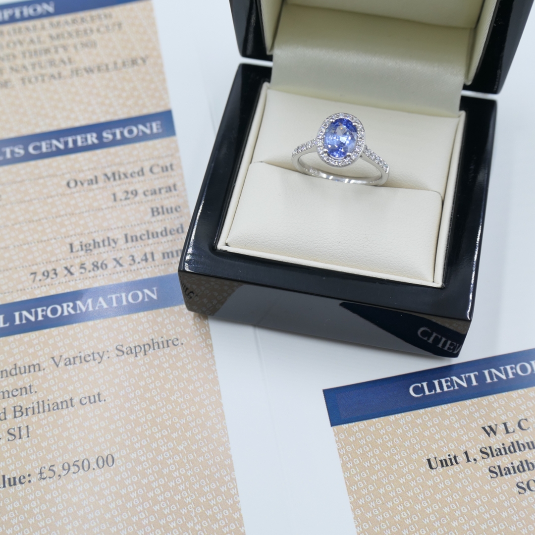 Beyond its visual beauty, this piece offers lasting value through the enduring prestige of natural diamonds — universally treasured for their rarity and consistent appreciation over time. Accompanied by a professional valuation of £5,950, this certified platinum sapphire and diamond ring is not only an exquisite statement of taste but also a sound investment in timeless brilliance and craftsmanship.