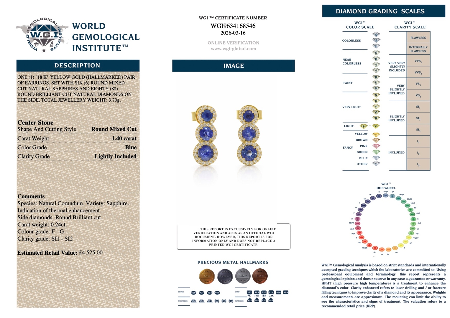 With a total weight of 3.70 grams, this certified pair offers both presence and comfortable wearability. Jewellery incorporating natural diamonds has consistently shown strong long-term investment potential, combining timeless aesthetic appeal with intrinsic value, making this an excellent acquisition supported by a retail valuation of £4,525.00.