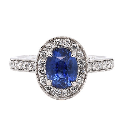 - > Natural Blue Sapphire 1.46ct & Diamond 0.34ct Oval Shaped Cluster Ring