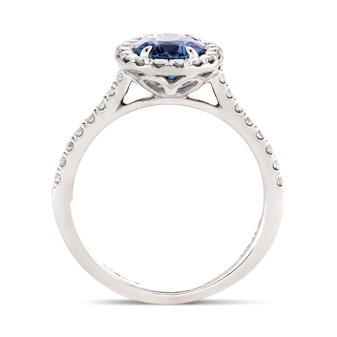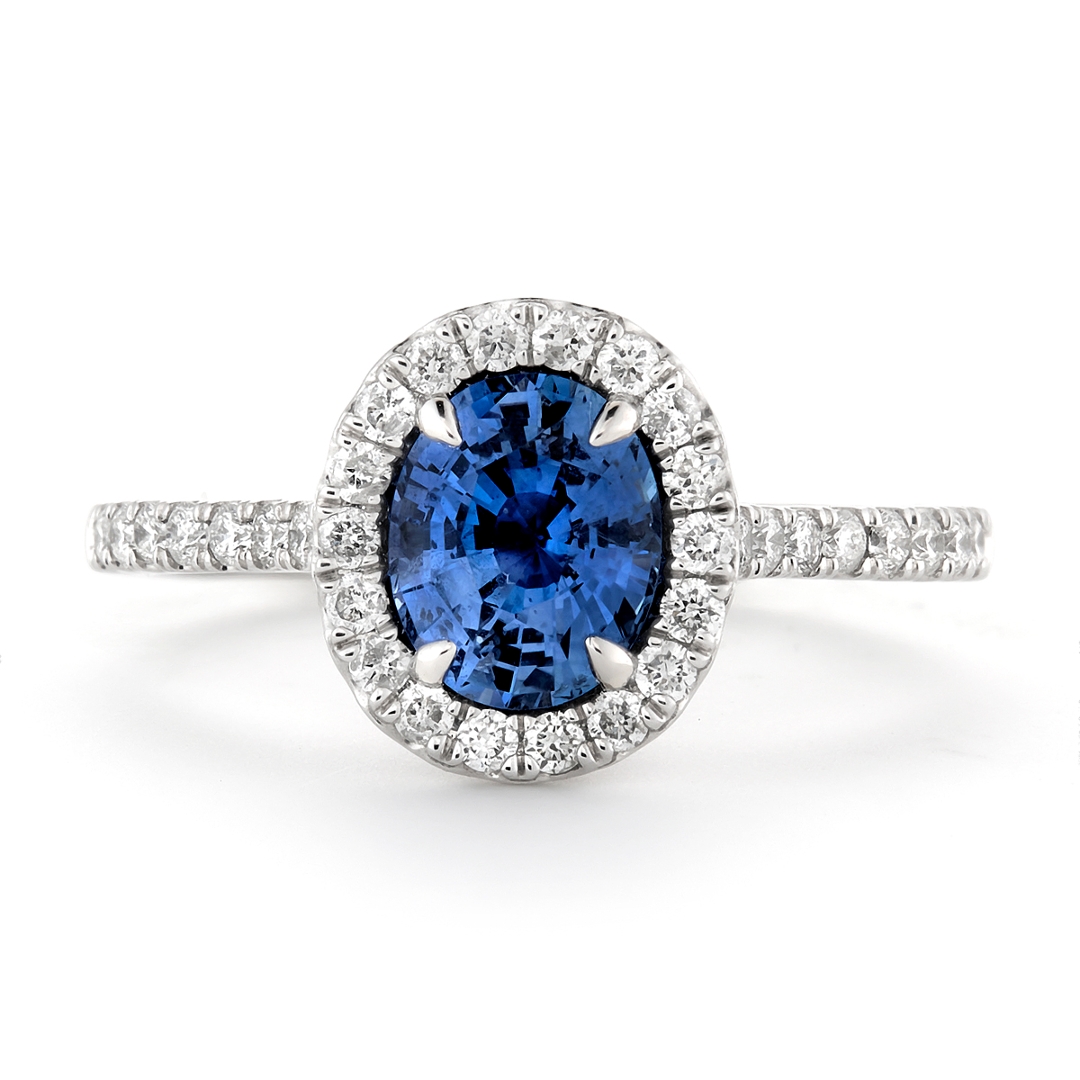 - > Natural Blue Sapphire 1.56ct & Diamond 0.43ct Oval Shaped Cluster Ring
