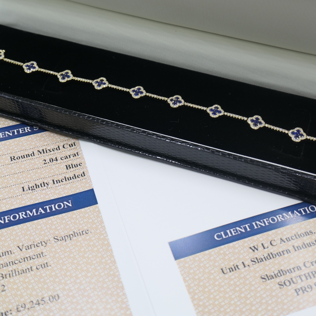 A brand-new, unused, certified natural diamond and blue sapphire cluster bracelet, this exquisite piece captures the essence of timeless luxury and refined artistry. The bracelet showcases a stunning arrangement of round, mixed-cut blue sapphires, totalling 2.04 carats, each displaying a vivid, velvety blue hue that radiates depth and brilliance. Surrounding these captivating sapphires are sparkling brilliant-cut diamonds, totalling 1.15 carats, with an exceptional F–G colour and SI1–SI2 clarity, enhancing the bracelet’s luminosity and adding an irresistible touch of sophistication.