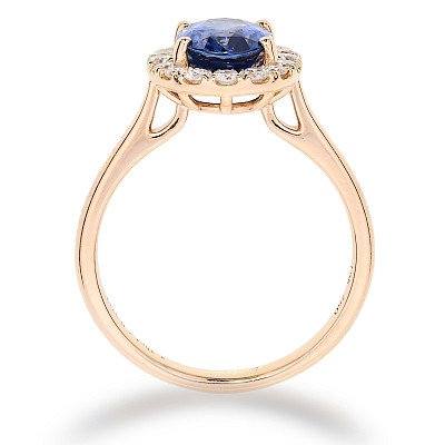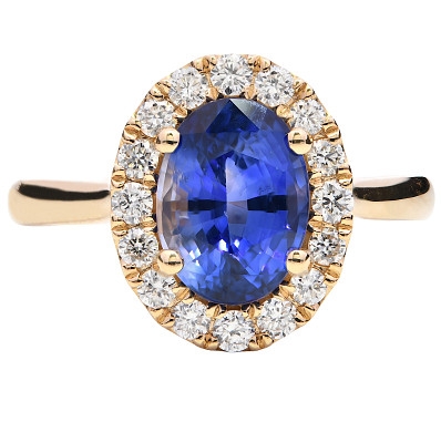 - > Natural Blue Sapphire 2.16ct & Diamond 0.32ct Oval Shaped Cluster Ring