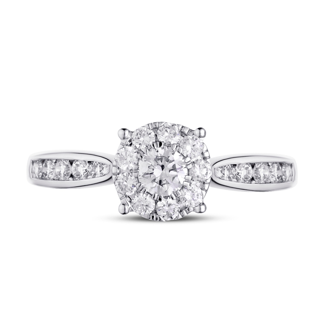 A brand-new, unused, certified 18ct white gold diamond brilliant-shaped cluster ring designed to showcase the exceptional beauty of natural diamonds. This elegant piece features a cluster of brilliant-cut diamonds at the centre, expertly set to create a stunning focal point. The brilliant-cut diamonds on the shoulders further enhance the overall brilliance, ensuring the ring sparkles from every angle and captures the light beautifully.