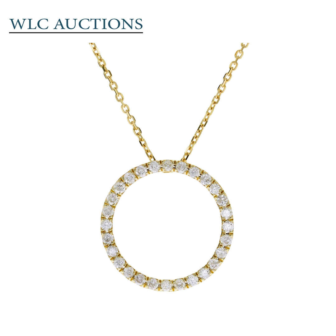 A brand-new, unused, certified natural diamond circle-shaped cluster pendant, set with a cluster of brilliant cut diamonds, set in 18ct yellow gold.
