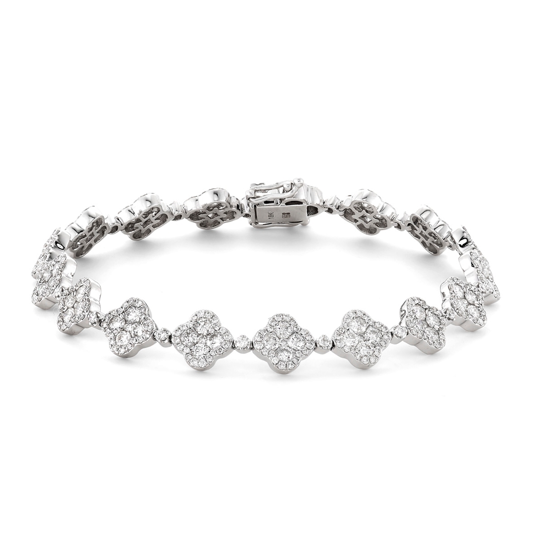 - > Natural Diamond Clover Shaped Cluster Bracelet 5.14ct