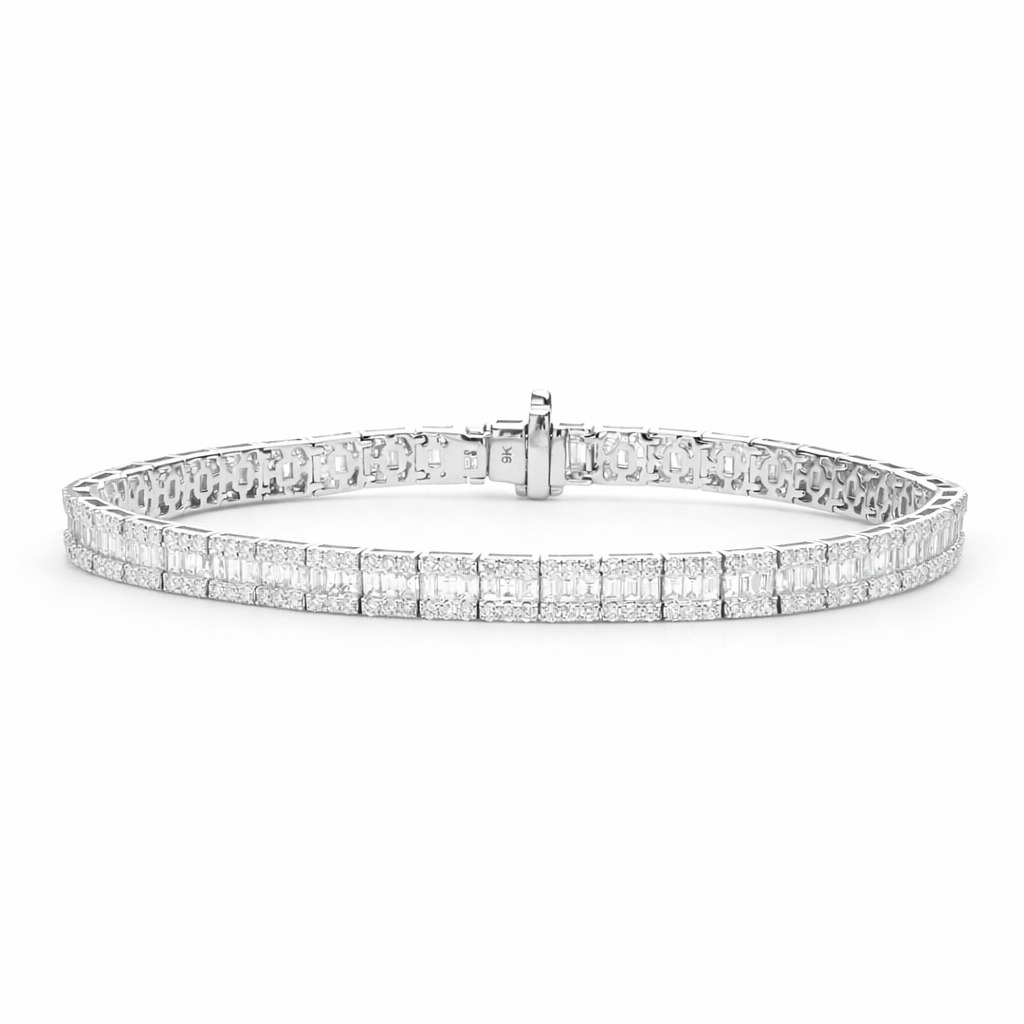 A brand-new, unused, certified natural diamond cluster bracelet, this breathtaking piece exudes elegance, brilliance, and timeless sophistication. Crafted in luxurious 18ct white gold, it features an exquisite arrangement of baguette-cut and brilliant-cut natural diamonds, totalling 4.55 carats. Each diamond, graded G–H in colour and SI1–SI2 in clarity, has been meticulously selected for its exceptional fire, clarity, and luminosity. The fusion of baguette and brilliant cuts creates a captivating interplay of light and texture, producing a radiant sparkle that captures attention from every angle.