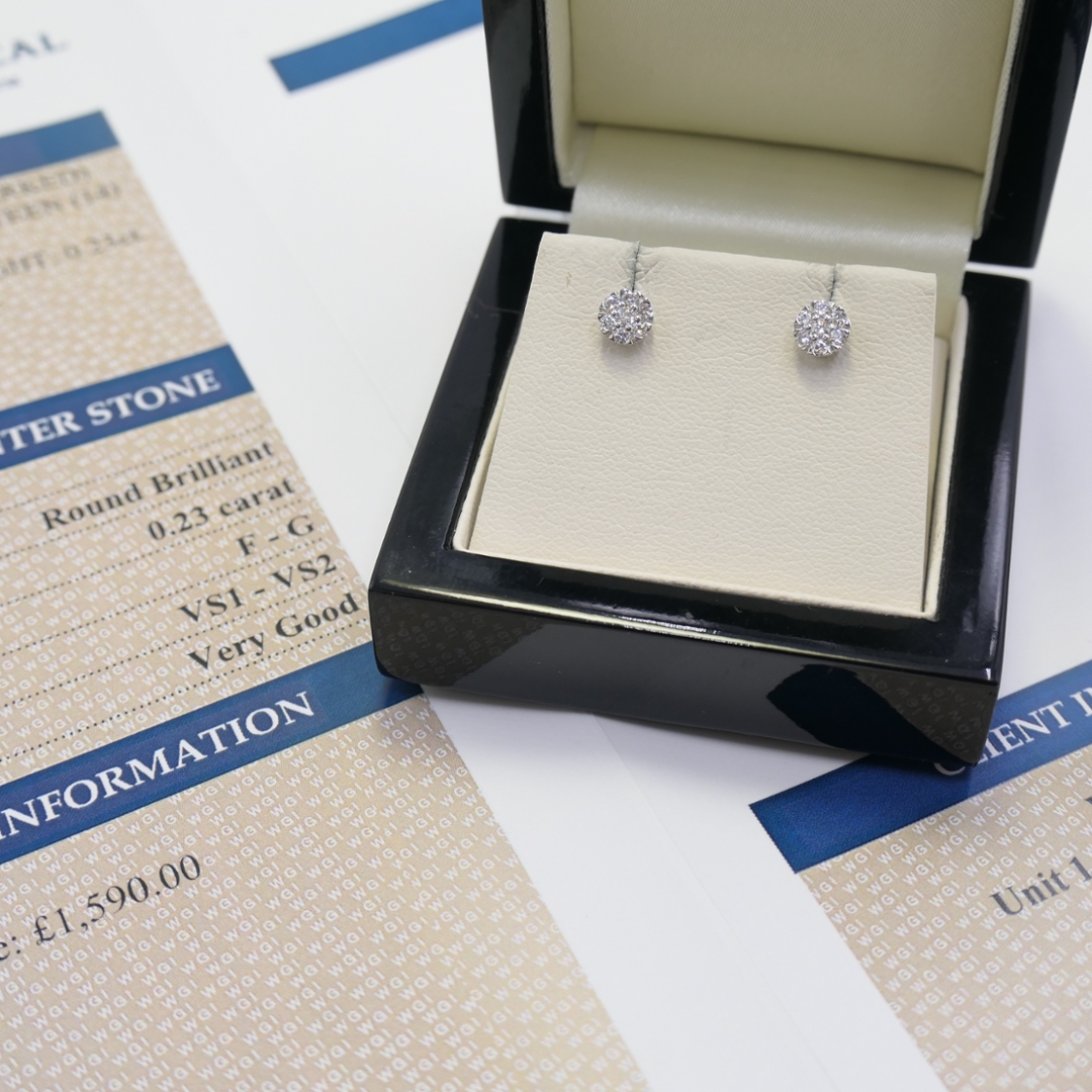 Valued at £1,590.00, these earrings are not only a luxurious accessory but also a wise investment. The brilliance and clarity of the diamonds, combined with the timeless design, ensure that they will remain a cherished piece for years to come.