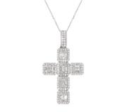 A brand-new, unused, certified natural diamond cluster pendant, set with a cluster of brilliant-cut diamonds in an offset design, in 18ct white gold.