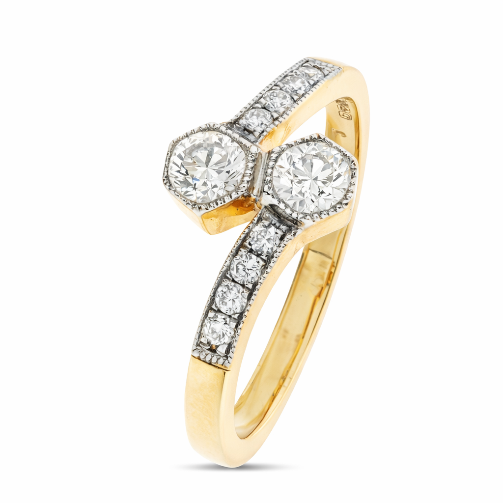 The rich tone of the 18ct gold provides the perfect contrast to the diamonds' crisp fire, giving the ring a luxurious, timeless appeal. Each diamond has been precisely matched and securely set to ensure lasting beauty and symmetry, reflecting exceptional craftsmanship. The flowing design captures both grace and sophistication, making it ideal for everyday wear or as a meaningful symbol of love and commitment.