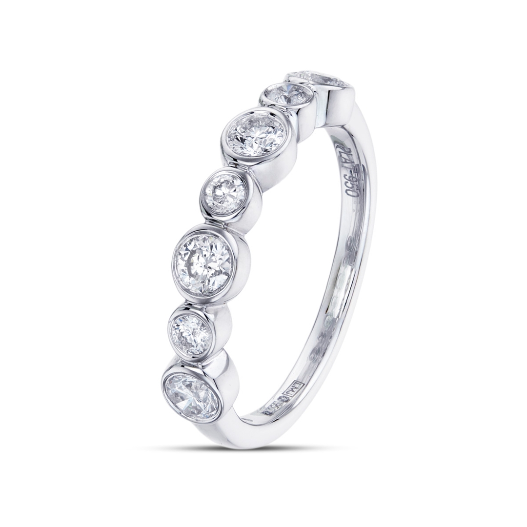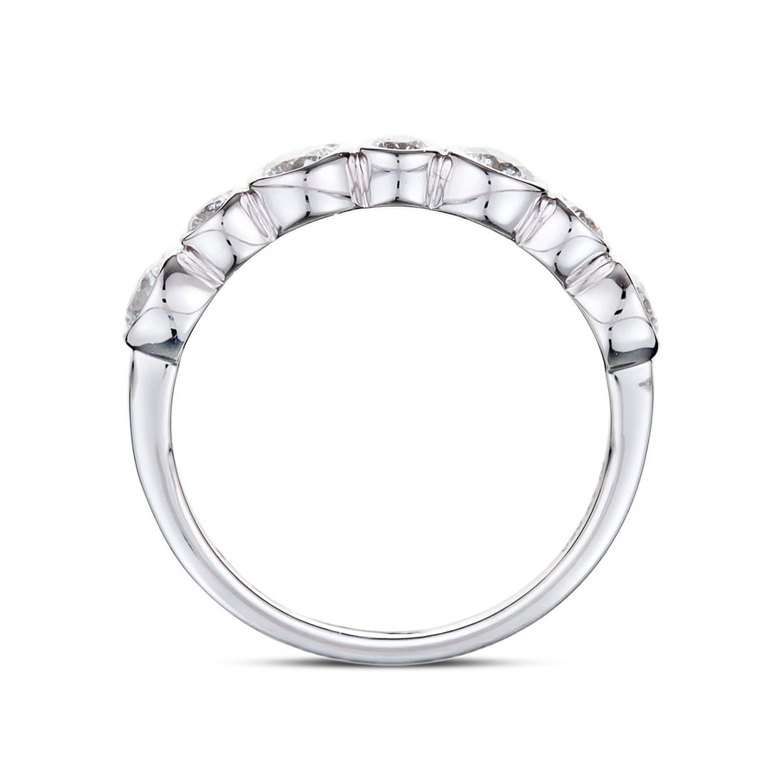 Crafted in platinum, the 4.59-gram setting enhances the diamonds’ luminosity with its cool, polished sheen. The design offers a graceful profile with enduring strength and sophistication, ensuring both comfort and security while being effortlessly elegant. Every detail has been crafted with precision to highlight the purity and natural beauty of each diamond, creating a ring that radiates understated luxury.