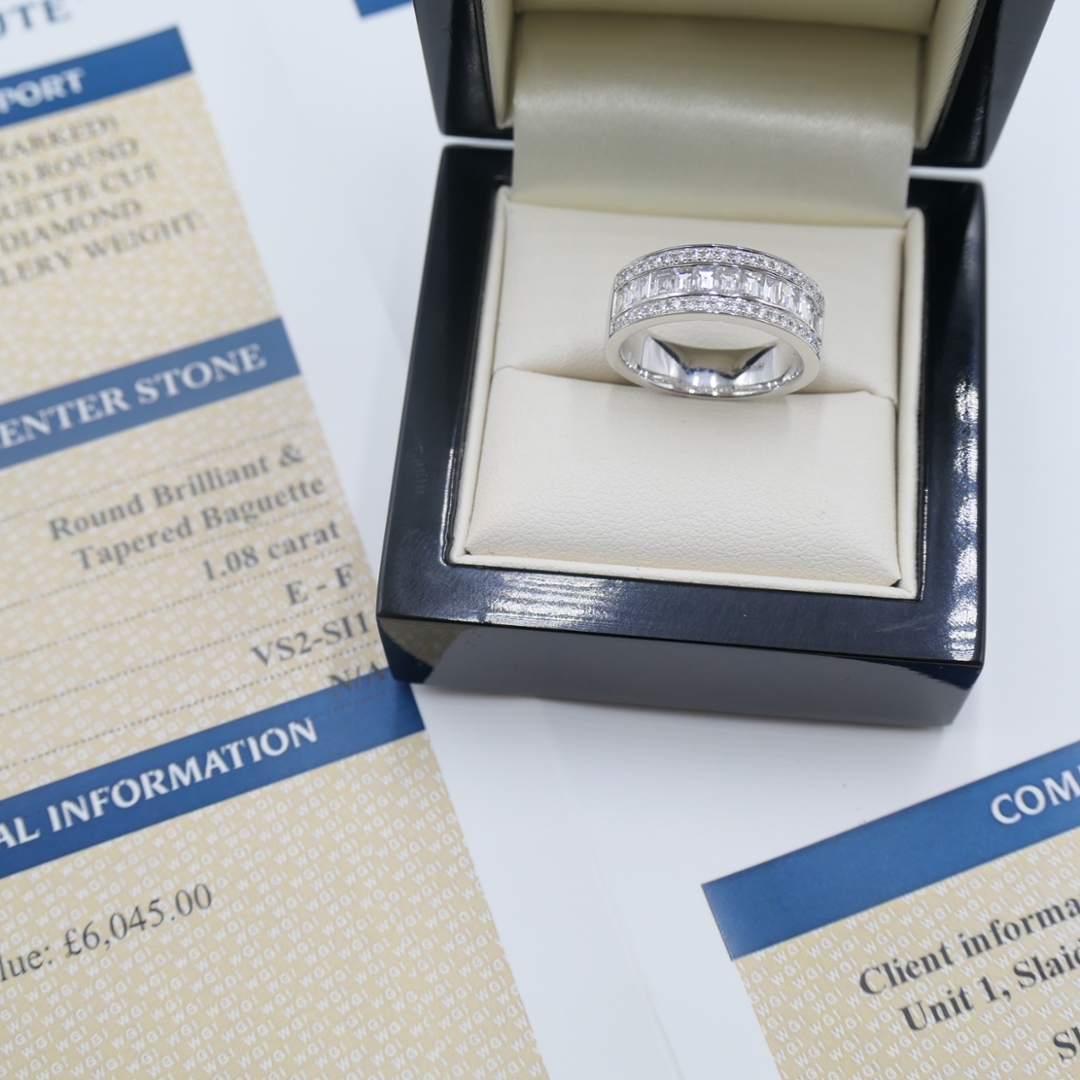 Weighing an impressive 11.04 grams and accompanied by a valuation of £6,045.00, this certified natural diamond ring is a true statement of prestige and refinement. Elegant, enduring, and radiant, it celebrates the unrivalled brilliance and purity of natural diamonds in a design that will remain timeless for generations.