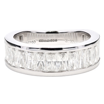 The diamonds, graded between SI1 and SI2 in clarity and G-H in colour, were carefully selected to ensure harmony in tone and brilliance. Their crisp white sparkle contrasts beautifully with the smooth platinum setting, creating a refined balance between strength and grace. The platinum mount adds a luxurious weight and durability that ensures the diamonds remain secure and radiant for generations to come.