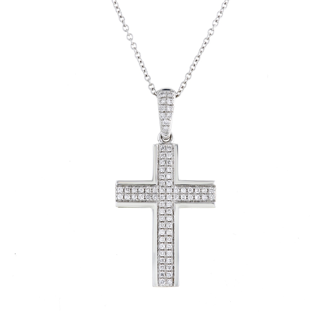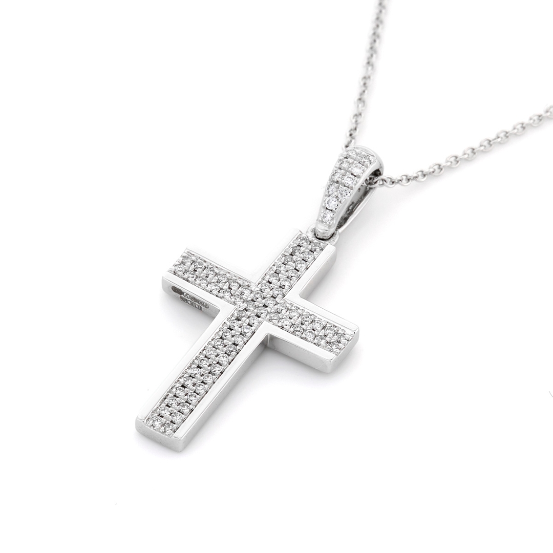 A brand-new, unused, certified natural diamond cross pendant, set with a cluster of brilliant-cut diamonds, set in 18ct white gold.