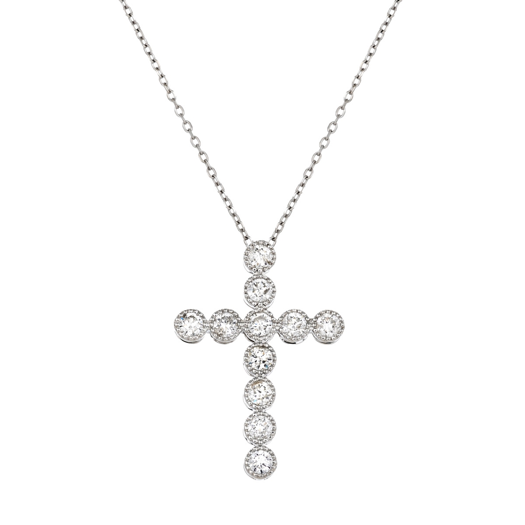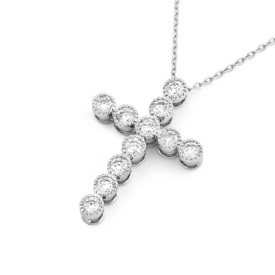 A brand-new, unused, certified natural diamond cross pendant, set with eleven brilliant cut diamonds, set in 18ct white gold.