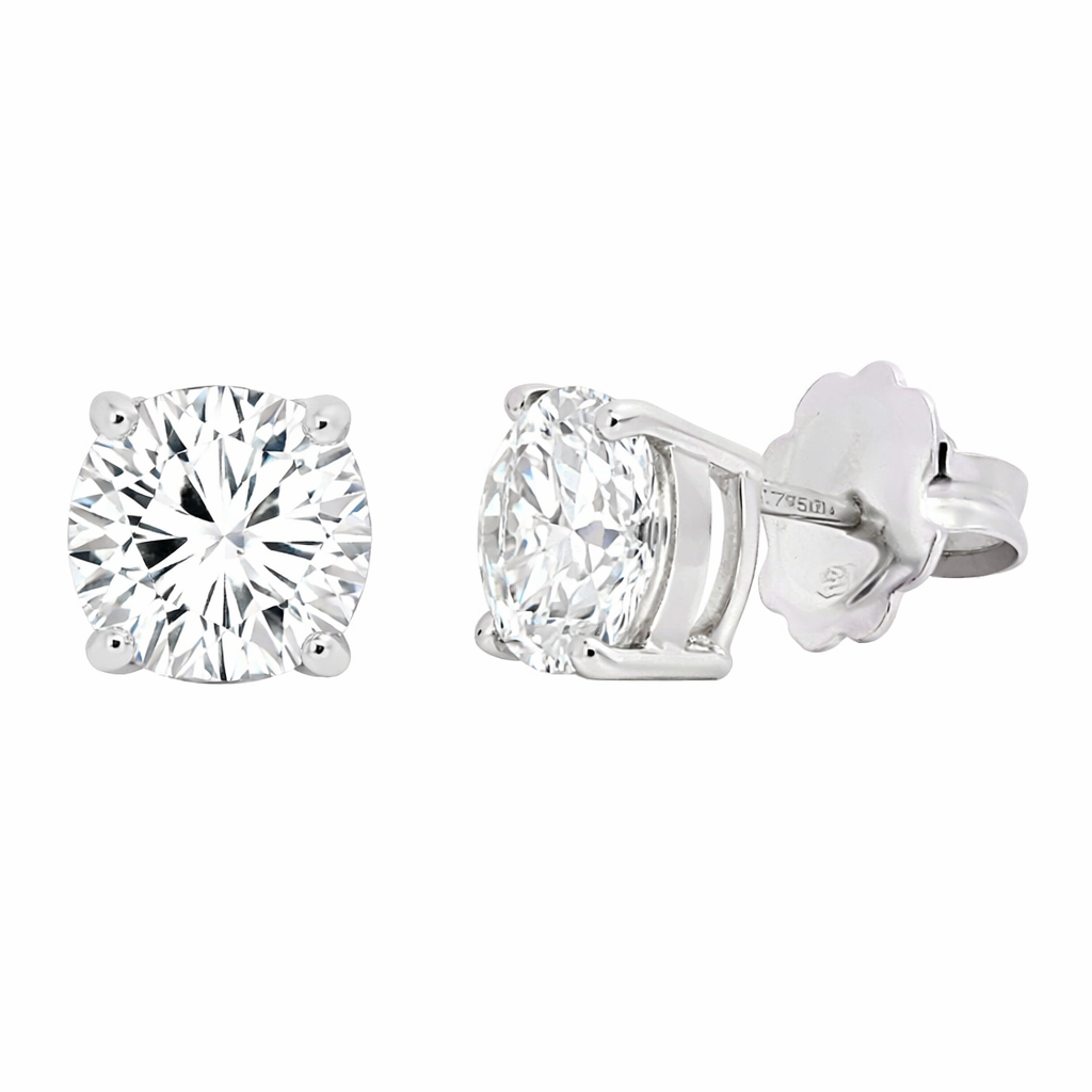 A brand-new, unused, certified pair of natural diamond solitaire earrings, with two cushion old-cut diamonds, set in 18ct white gold.